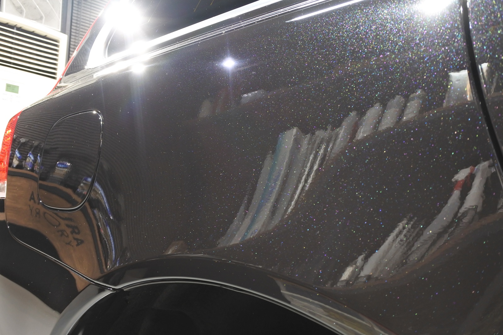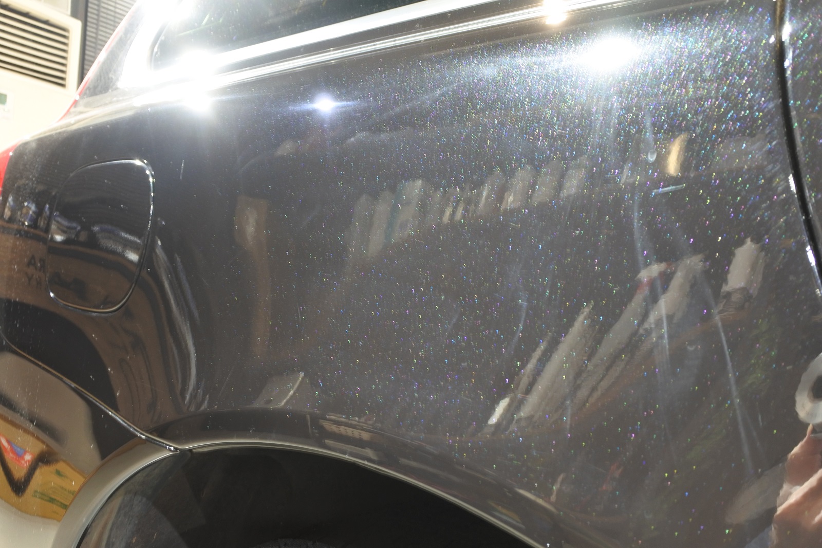 完成したおクルマをご覧になったオーナー様は、「すごい!こんなにキレイになるんだ。」と驚かれていらっしゃいました。また、施工する前とはおクルマの色も変わったかのように光っていると喜んでくださいました。施工したことでブラックの中のメタリックがひと際輝きを増したのですね。ご満足いただけたようで何よりでございます。