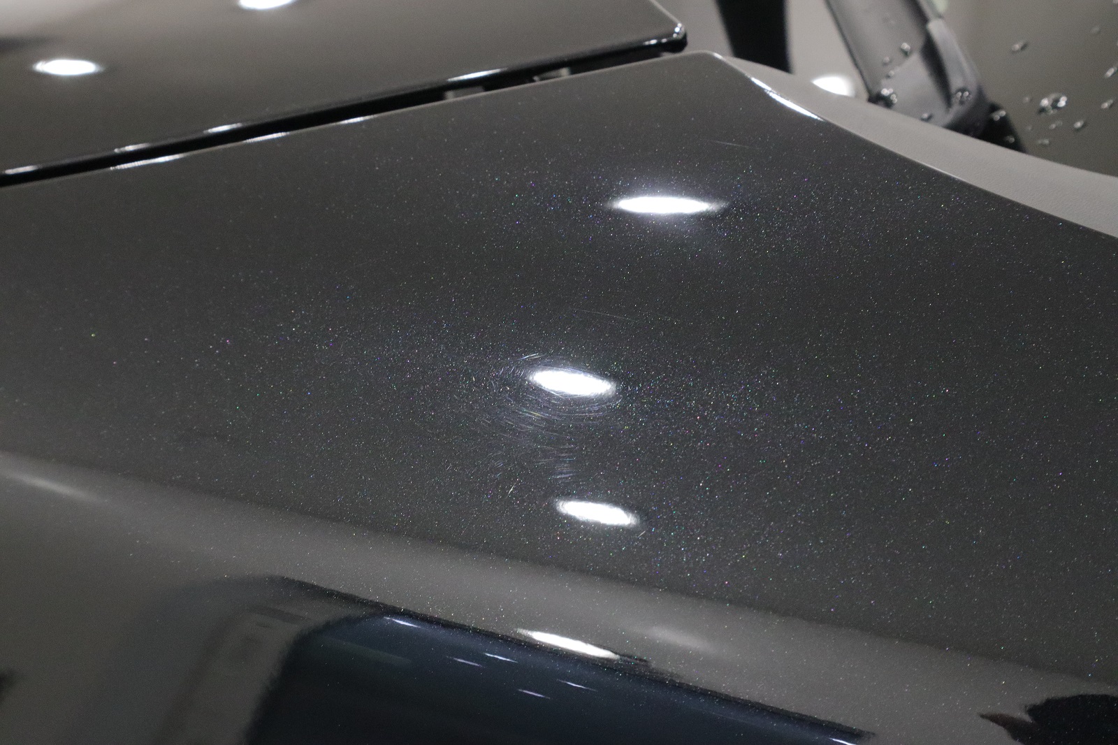 最初に洗車キズの原因になります、砂埃や泥汚れをシャンプー洗車で落としてまいります。落ち切らない汚れは、汚れにあった洗剤を使い除去してまいります。比較的に目立つ汚れは少なかったのですが、洗車キズが目立つ状態となっていました。キズが多くありますと、コーティングの艶や効果が薄れてしまいますので、部分的に研磨してまいります。