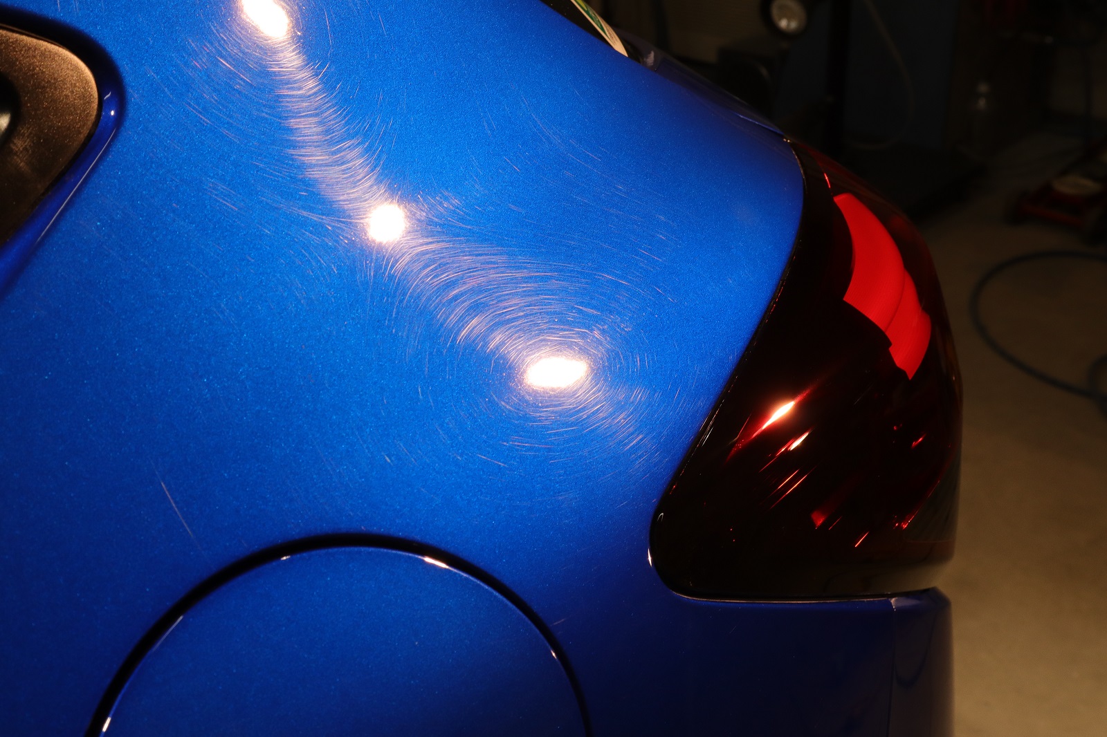 リアクォーターはこのように洗車キズが見えやすいです。こちらも同じように美しく磨き上げてまいります。
