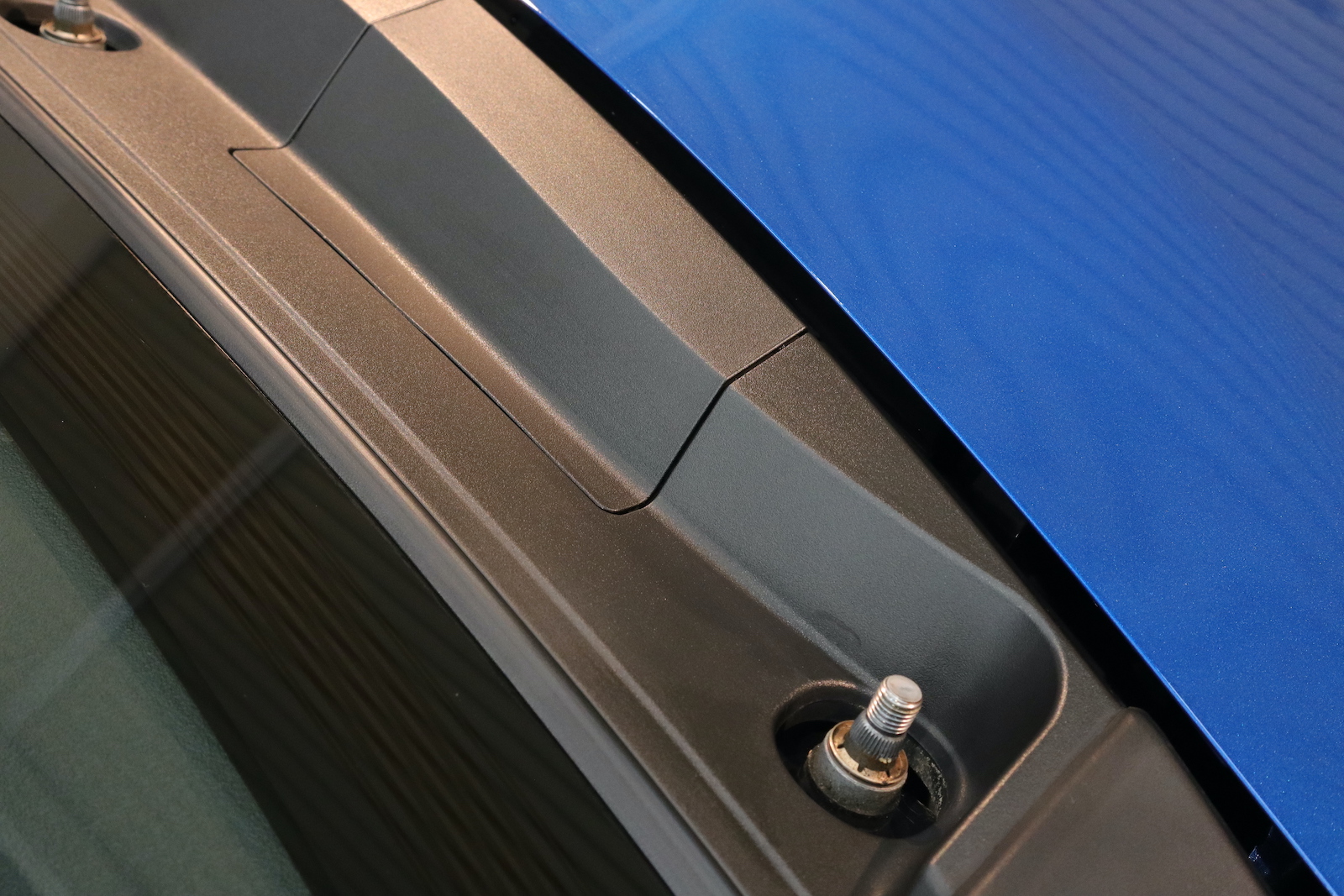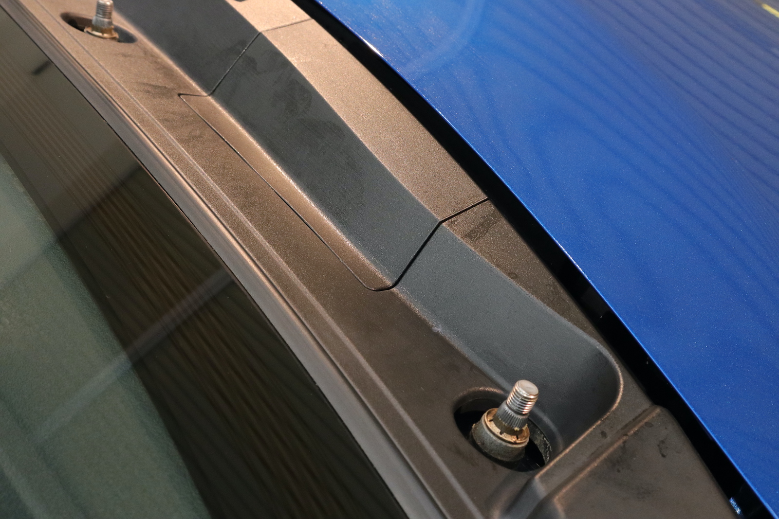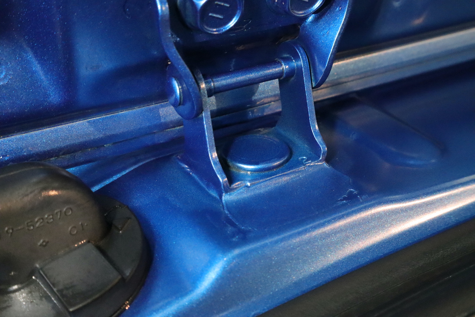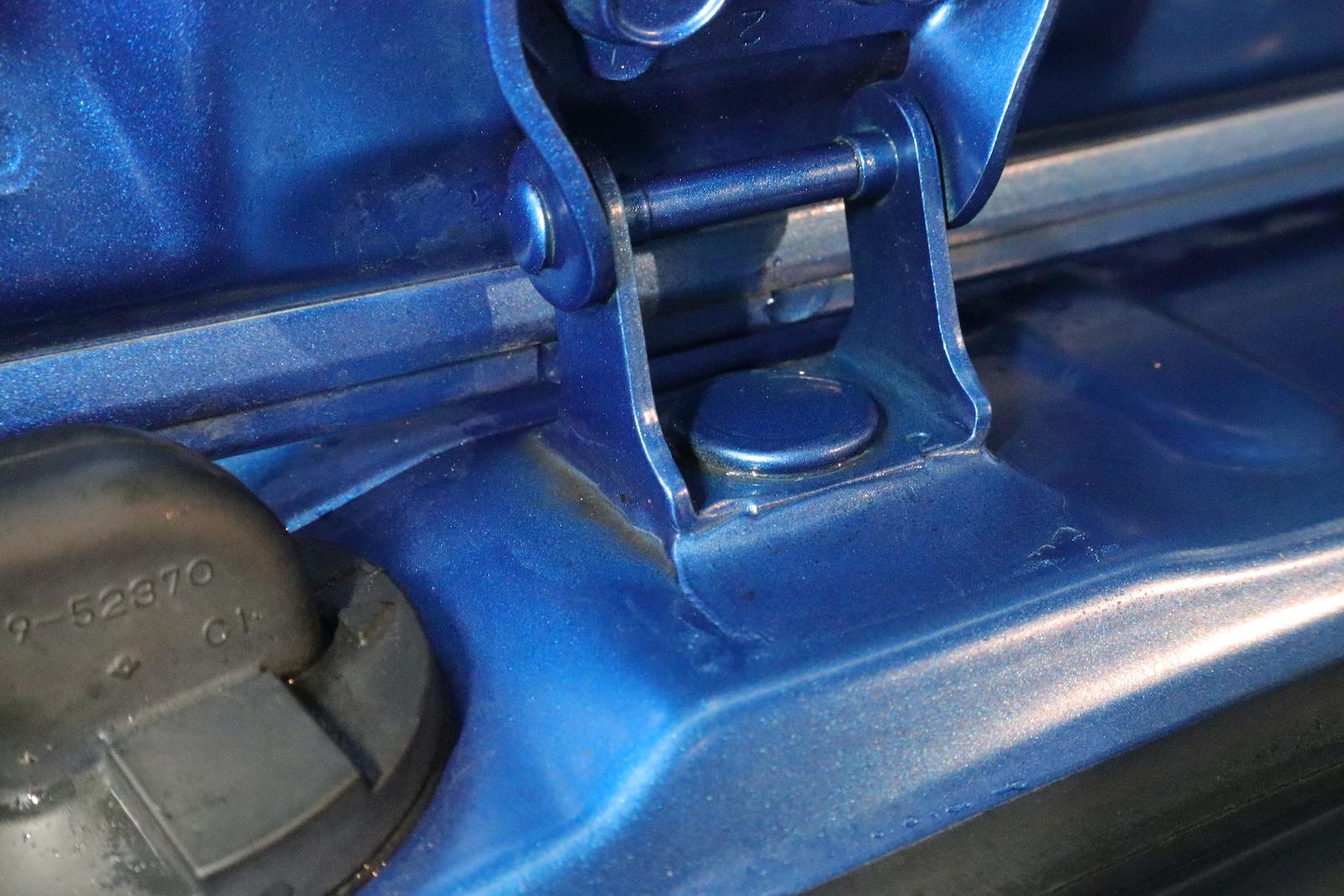 こちらは、リアゲートのヒンジです。下地処理洗車には、ヒンジ洗浄も含まれますので、このような箇所もキレイにいたします。