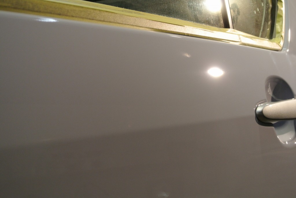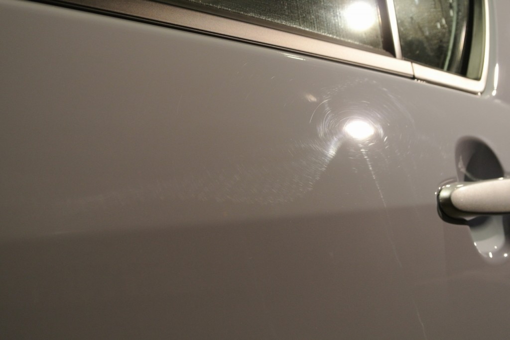 フロントドアには、また違った形の研磨跡がありました。色々な磨き方をしたのでしょうね。こちらも綺麗に除去いたしました。