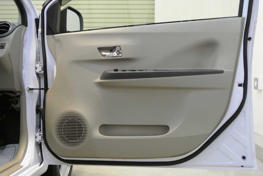 シンプルな内装です。ひじが乗る部分が、ドアの内側へとえぐれています。これで窮屈さがかなり解消されるんです。