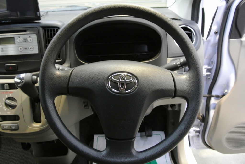 トヨタのマークが入った、シンプルなウレタンステアリング。