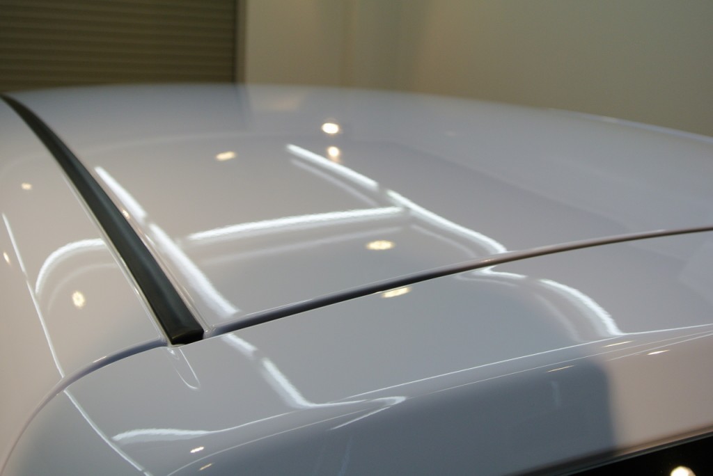 ボディーカラーはスカイブルー。メタリックなどが入っていない、ソリッド塗装です。左右側面を板金塗装されており、磨き傷が多く見られます。マスタライズ研磨工法と、5層構造のTTクリア5レイヤーで、傷を除去し塗装面を整え、可能な限り美しく仕上げて参ります。フロントガラスの撥水コーティングも合わせてご用命いただきました。