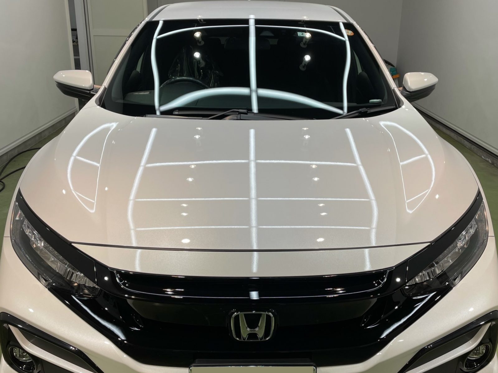 新車で納車されたばかりのホンダシビックに極艶ビューティフルコートのご用命をいただきました。県外茨城県よりお越しいただきましたオーナー様のご期待にお応えできるようにディテイラーの工藤が心を込めて施工させていただきます。