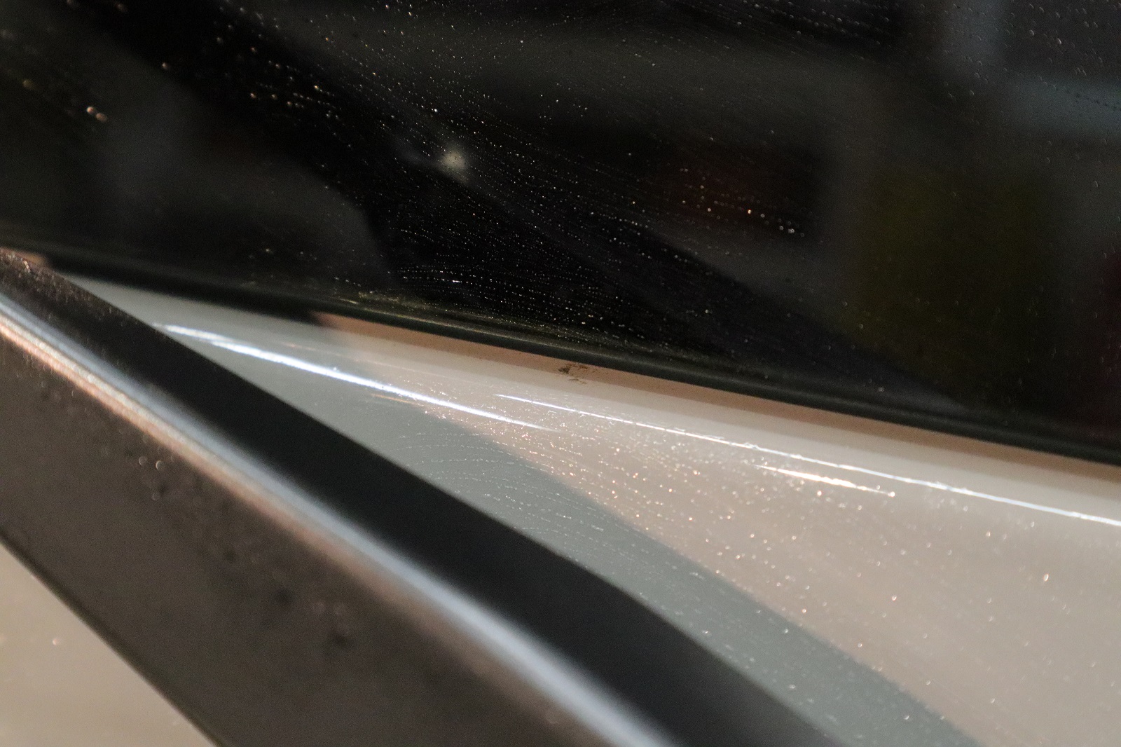 リアゲートも運転席と同じようにドアを開け閉めした際についたと思われるキズがありました。指紋や乾燥した手で塗装を触れますと、このようにキズがついてしまいます。こちらを美しく磨き上げてまいります。