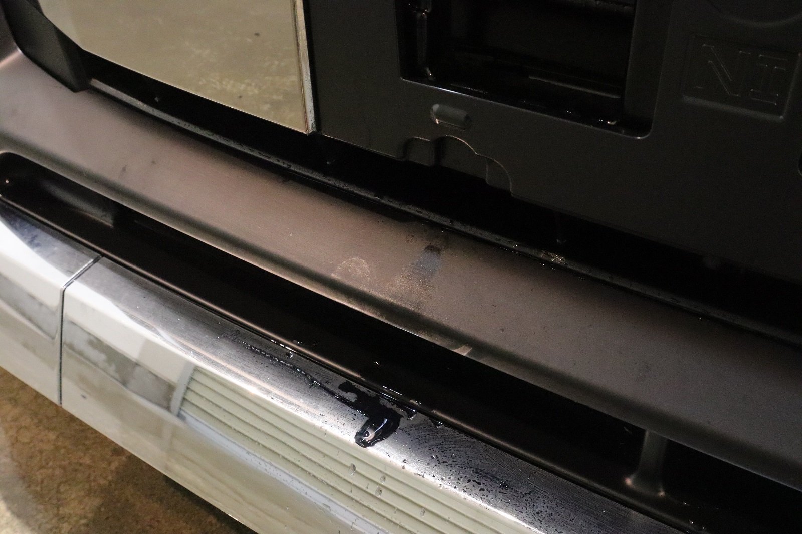 グリルの上部も同じく水ジミが付着しておりました。キレイにしてまいります。