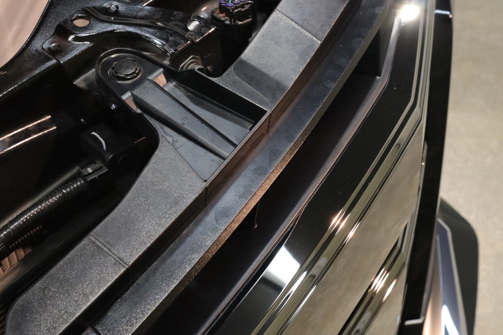 バイザーにもこのように洗車キズが目立ってあります。こちらも美しく磨き上げてまいります。