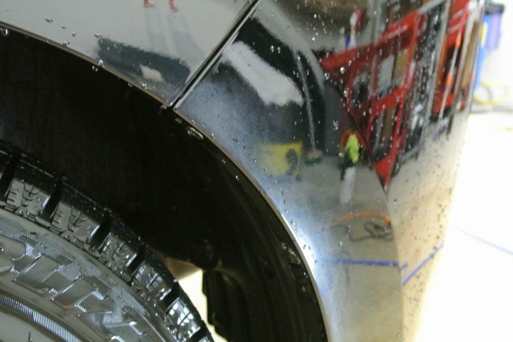 スノーブラシで付いた様な、深くて直線的な傷が多く見られます。オーナー様とお話をさせていただきましたが、何故付いたのかは不明です。今後の為に、傷を入れにくいスノーブラシの使い方をご説明させていただきました。