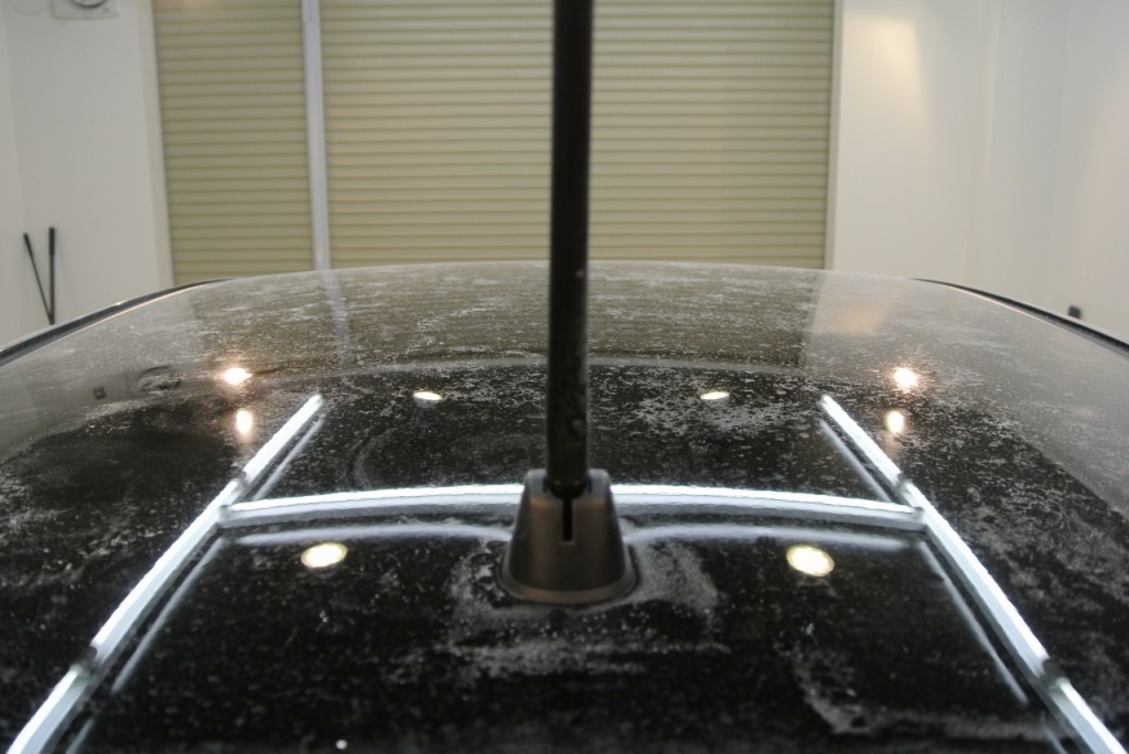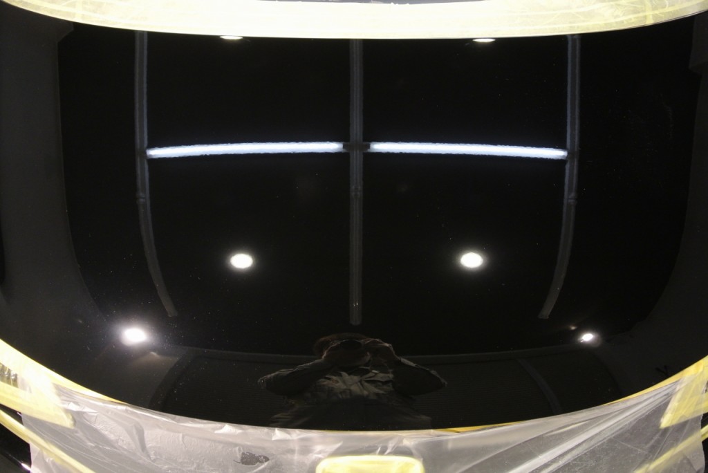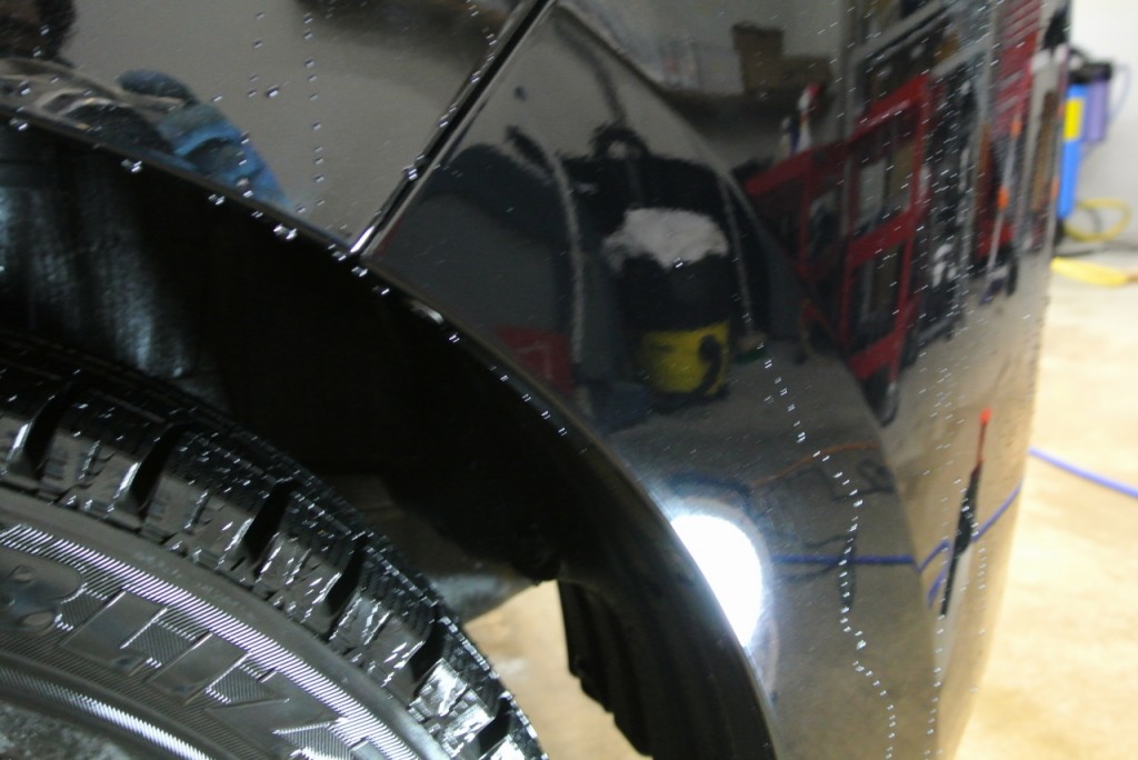 研磨完了です。研磨後のボディーはご覧の様にコンパウンドの白い粉だらけ。洗車で綺麗に洗い流した後、5層のコーティングを施工して参ります。