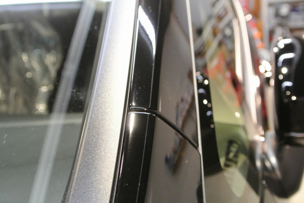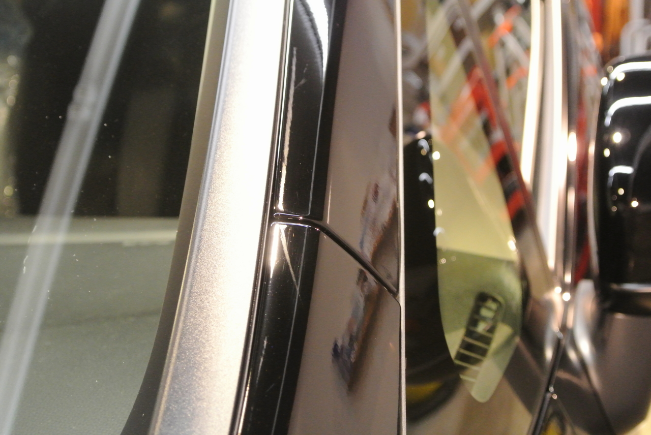 助手席側のAピラー。大きな傷が入っております。窓の雪を降ろすときによく付けてしまう傷です。幸いあまり深くなかったので、除去する事ができました。