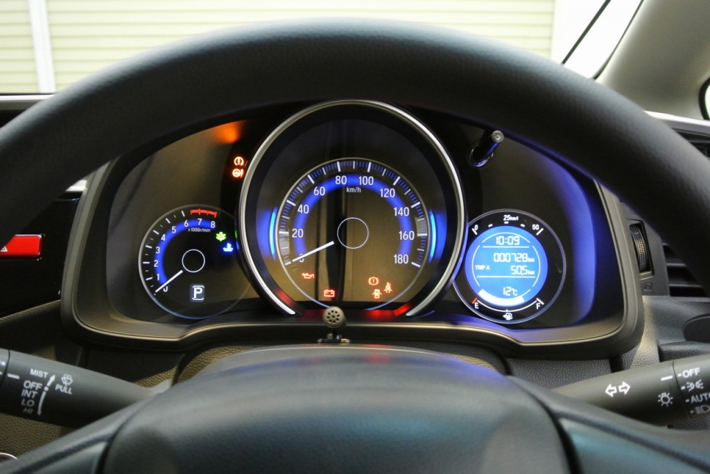 中央にスピードメーターがあり、見やすいレイアウトですね。最近、タコメーターが付いていない車種をよく見かけるので、付いてると嬉しくなってきます!