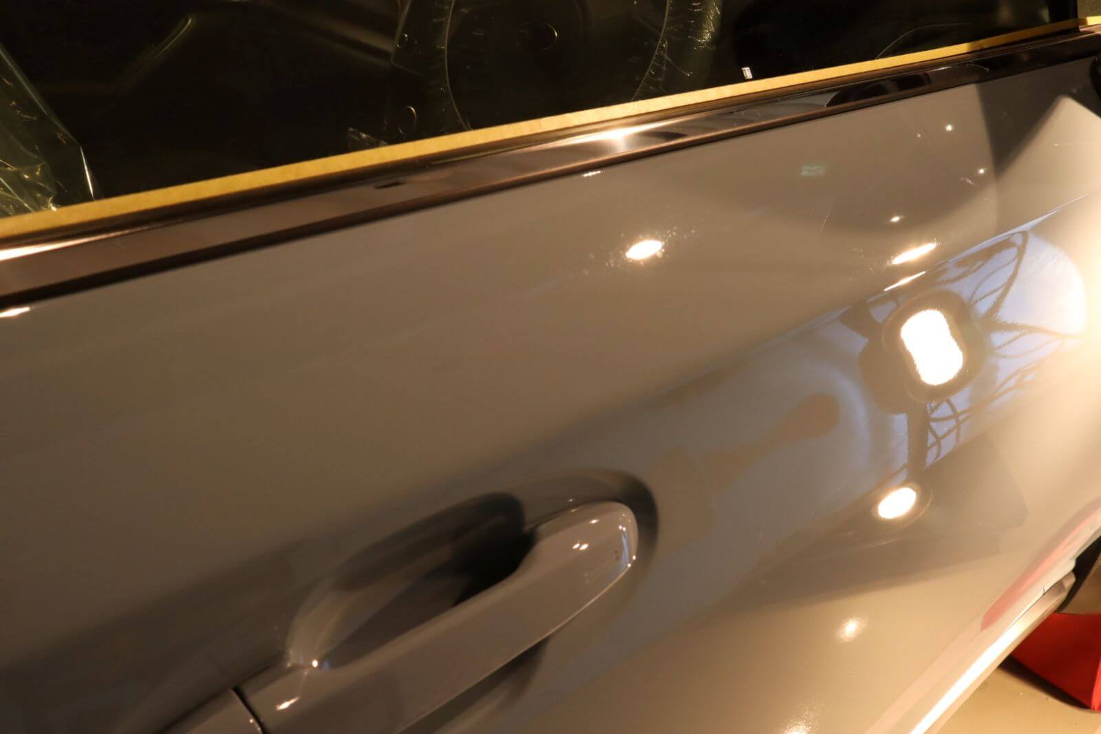 XVのこのボディーカラーは汚れ、シミ、キズが目立ちにくいのですが特殊な照明を使いしっかりと磨いていきます。