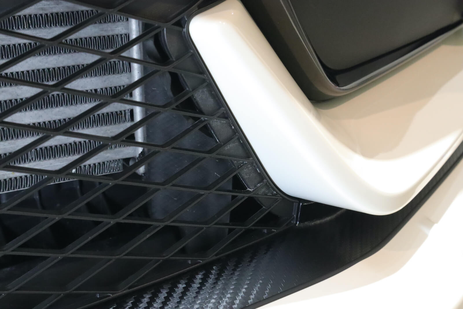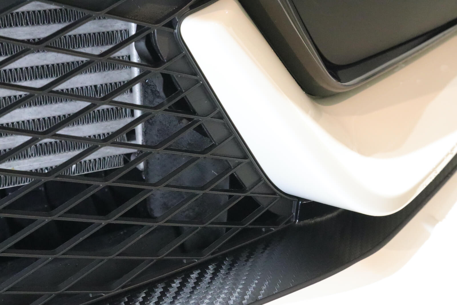 こちらはフロントバンパーに装着されております、樹脂製のメッシュ部分です。何か塗られたような白い汚れが付着しておりましたので、キレイにしてまいります。