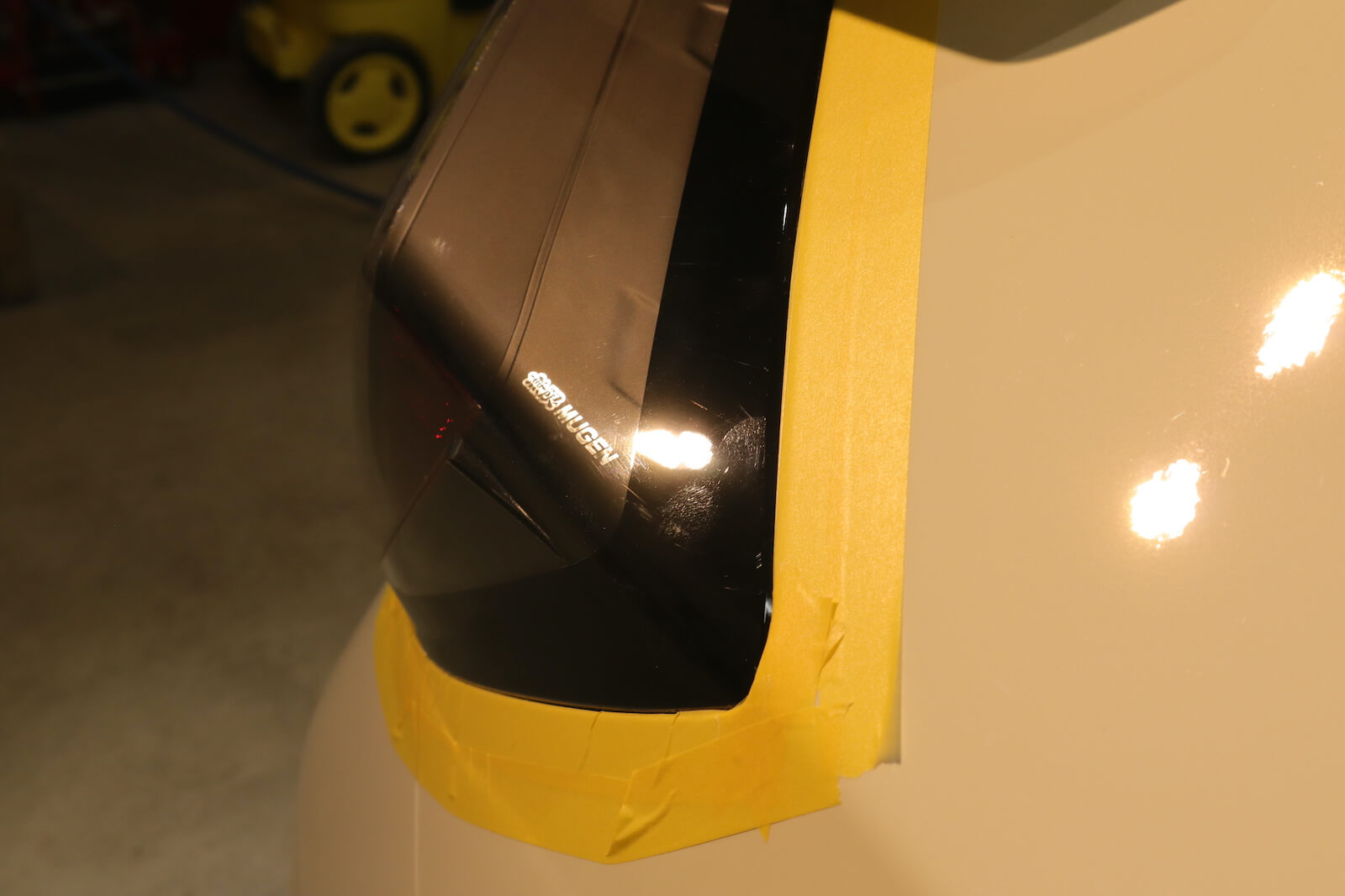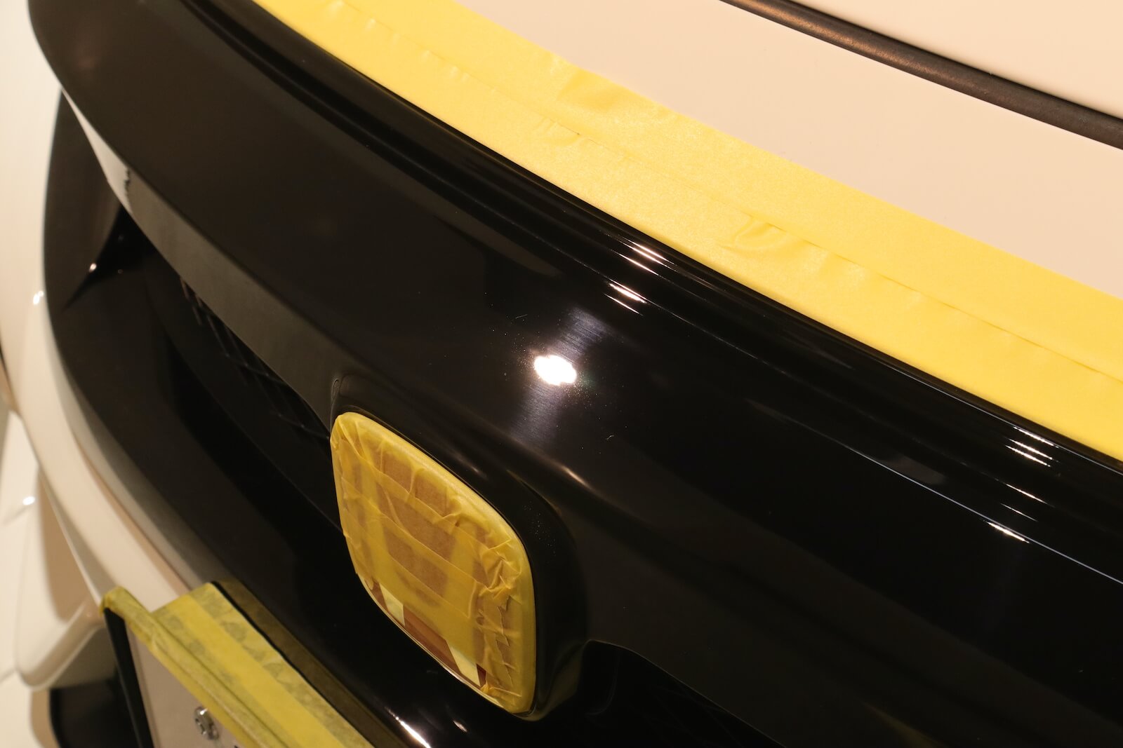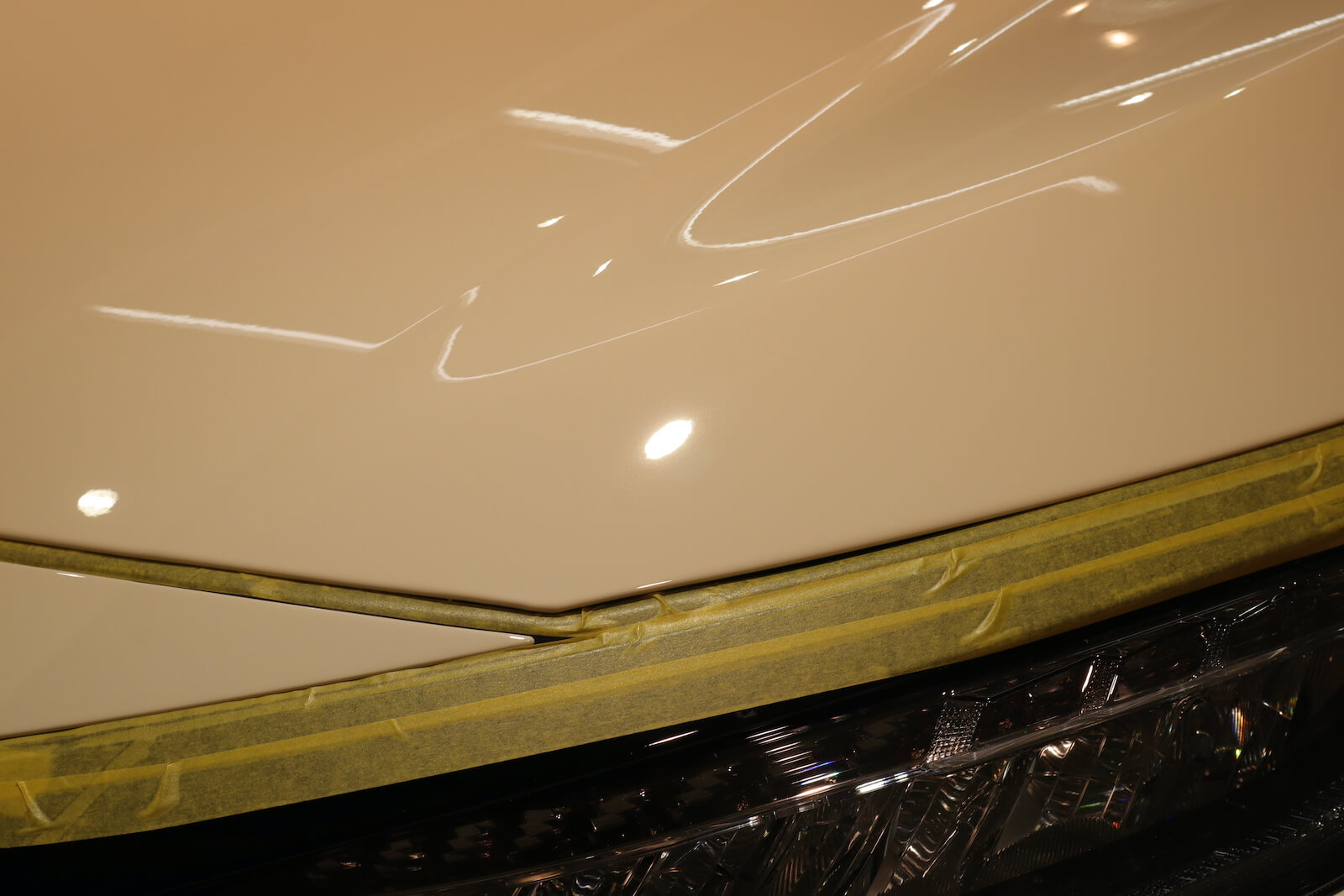 ボンネットのふちに納車までの間、貼られております保護フィルムの糊跡が残っておりました。こちらもしっかり除去してまいります。