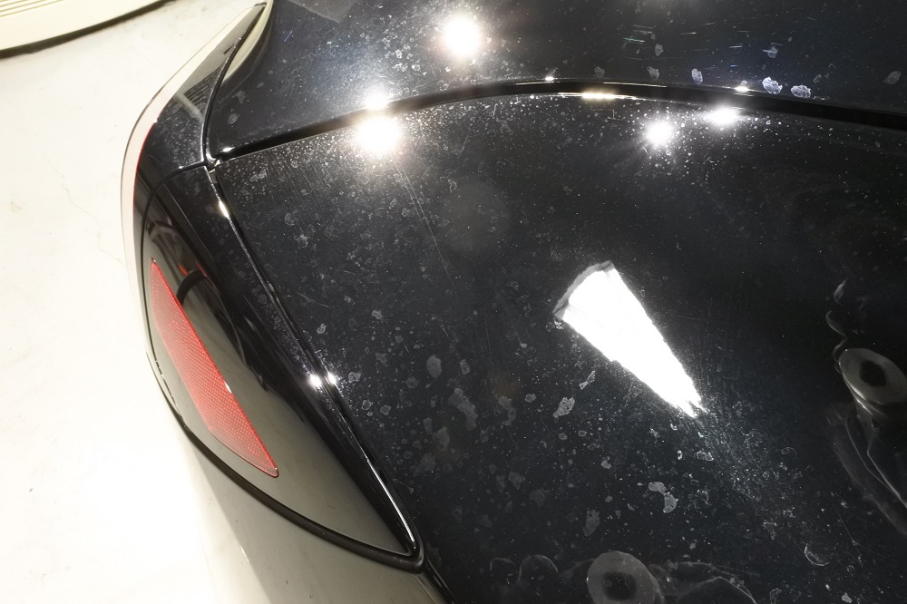 まず初めに洗車キズの原因になります砂埃や泥汚れをシャンプー洗車で落としてまいります。落としきれなかった汚れは汚れにあった溶剤で除去してまいります。オーナー様は水ジミを特に気にされていたので、ウォータースポットリムーバーを使いキレイに落としてまいります。
