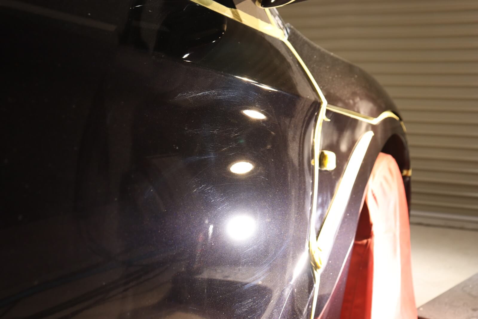 こちらのオーナー様は、一年前に別のコーティングを施工されておりましたが、この度下回りの防錆処理をされた際、業者さまが飛び散ってしまった防錆剤を除去したそうですが、「多少の傷は仕方がない」という価値観の差で傷まみれの状態でご納車となってしまい、何とかして欲しいとのご要望でご用命いただきました。オーナー様のご期待にお答えできるよう、しっかりと施工させていただきます。