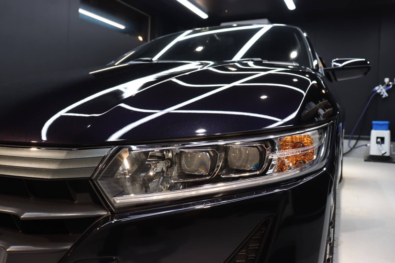洗浄・研磨作業が終わり、3工程で強い被膜となりますグロスアーマーを施工してまいります。グロスアーマーは非常に透明度の高い被膜ですので、美しく磨き上げられた塗装の邪魔をすることなく、美しさを最大限に引き出します。また、強い被膜で塗装面を汚れや劣化から守ってくれます。