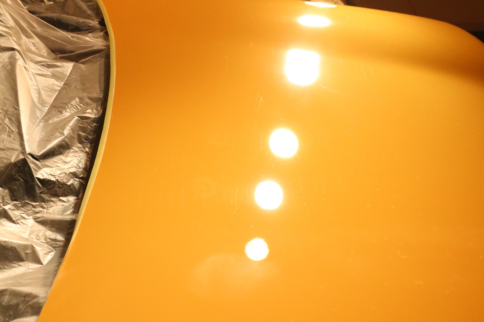 研磨作業へと移ってまいります。ボンネットに付いておりました擦りキズです。