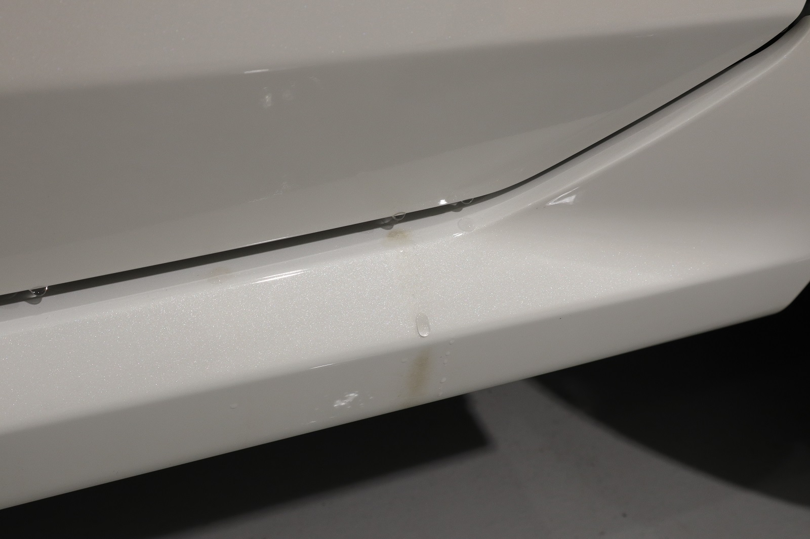 サイドステップに内側から垂れてきた水滴に含まれているグリス汚れがありました。キレイにしてまいります。