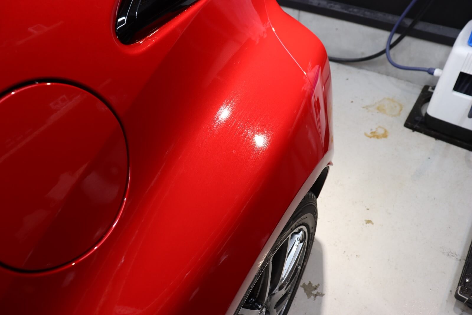 徹底的な洗浄を終え、続いては研磨作業へと移ってまいります。新車のご納車から約一年を迎えるお車で、更に管理状態も良好ですが、丁寧に研磨を施すことで美しさを最大限に引き出してまいります。
