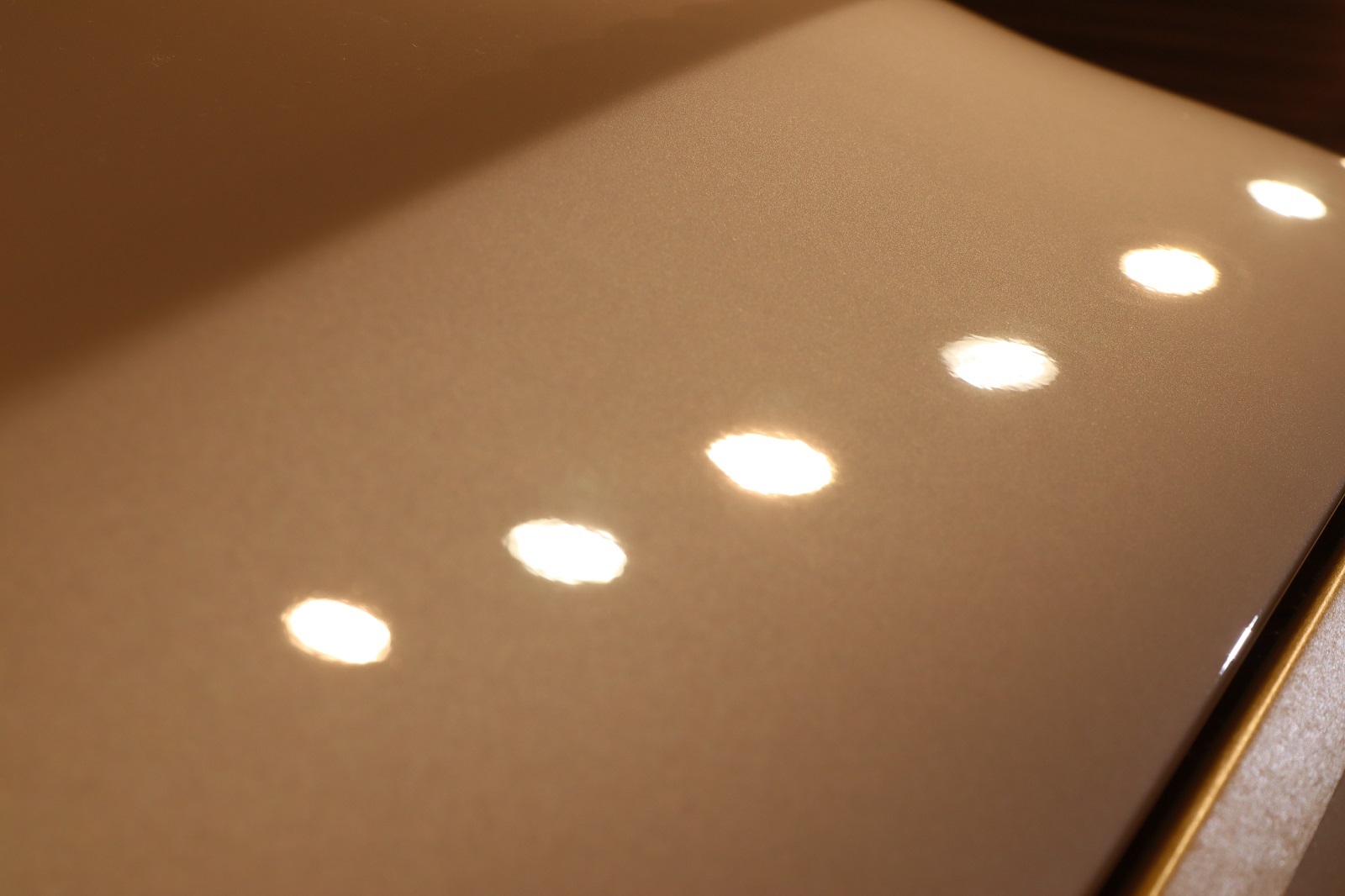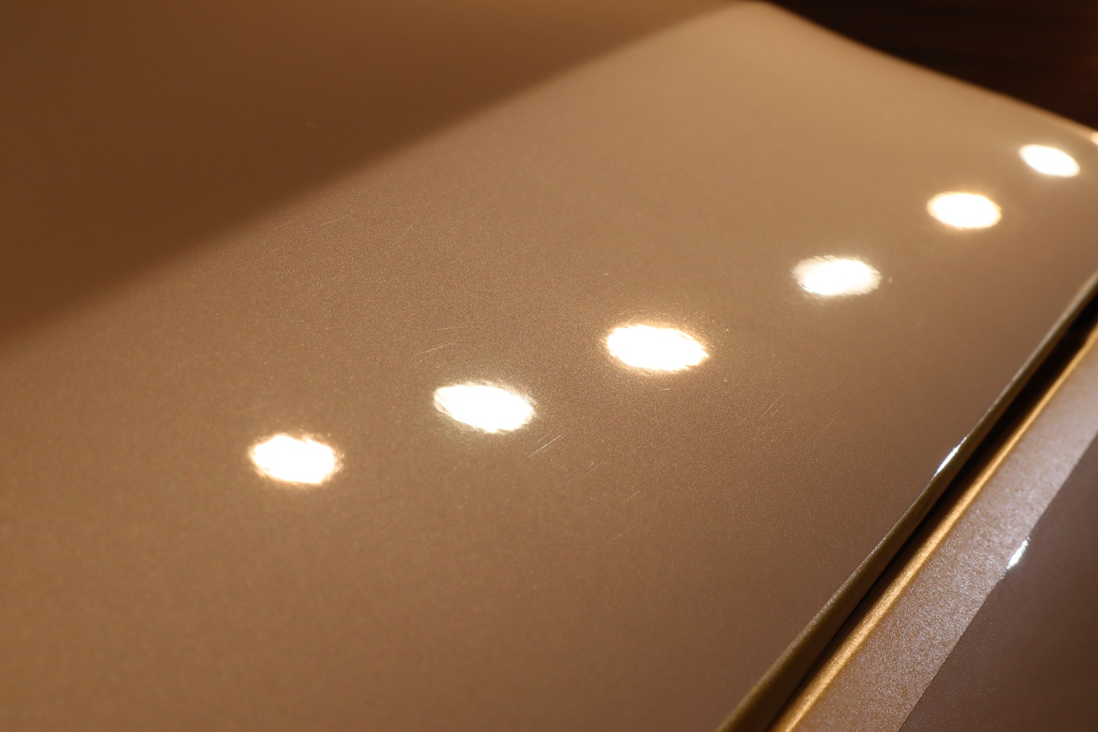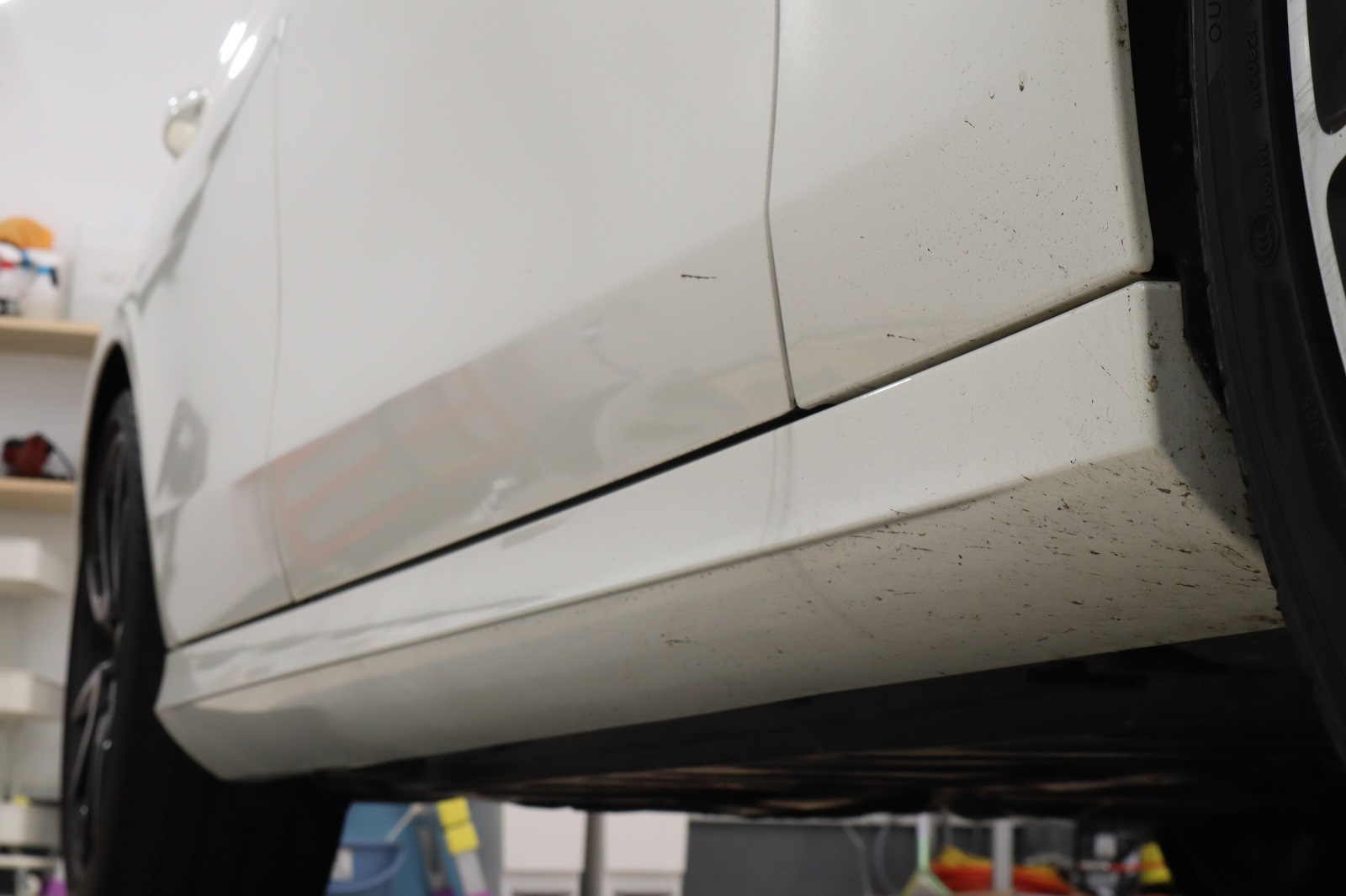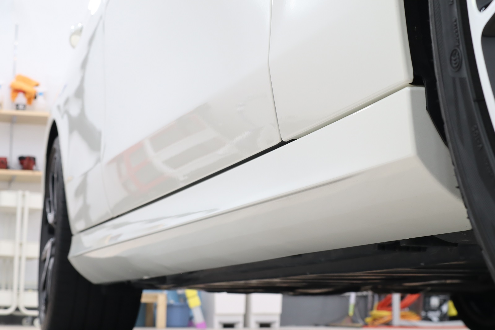 こちらのオーナー様は、おクルマをご購入された時にはコーティング施工済みでしたので、洗車の相談や洗車用品のご購入で何度かご来店いただておりました。その度に当店のデモカーの美しさが気になっていたそうで、「やっぱりあの輝きが欲しい!自分のクルマも同じにキレイになりますか?」と再度ご来店くださいました。おクルマをオーナー様と一緒に確認させていただきました。多少の擦りキズと塗装の「もやり」がございましたが水ジミはあまり付着しておりませんでしたので軽研磨とグロスアーマーを提案させていただき、ご用命となりました。