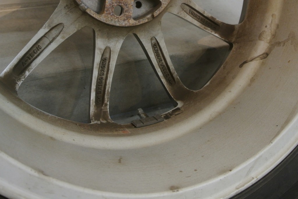 夏用ホイールのコーティング前の下処理です。オーナー様が綺麗に洗って保管されていましたが、普通の洗剤では落ちない、ブレーキダストの茶色い汚れが付着しています。