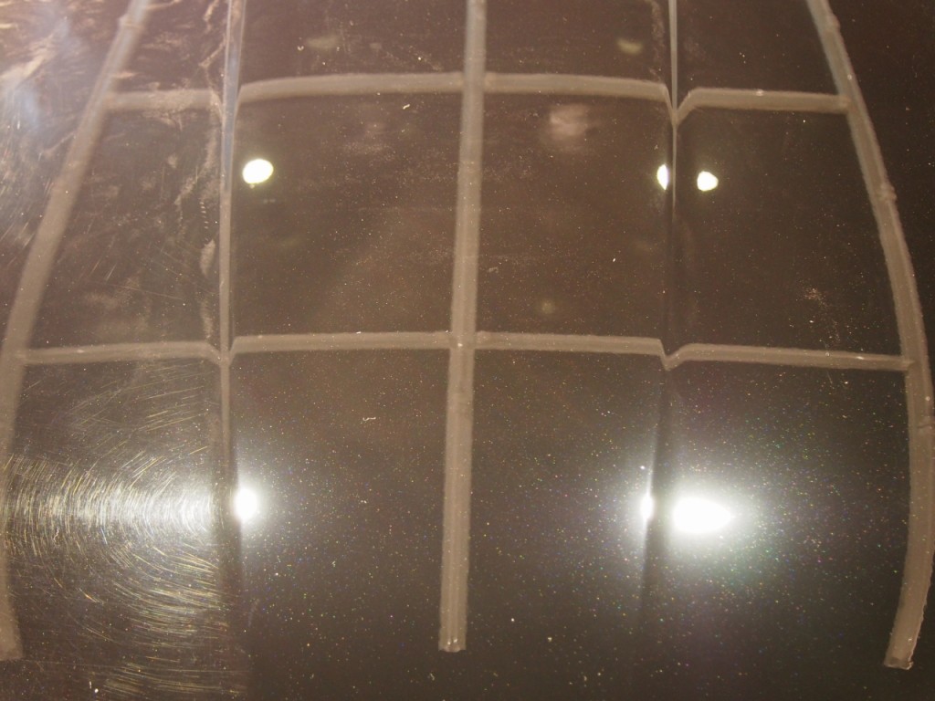 ガラスの撥水コーティングの下処理です。頑固なうろこ状の汚れも研磨して綺麗にします。