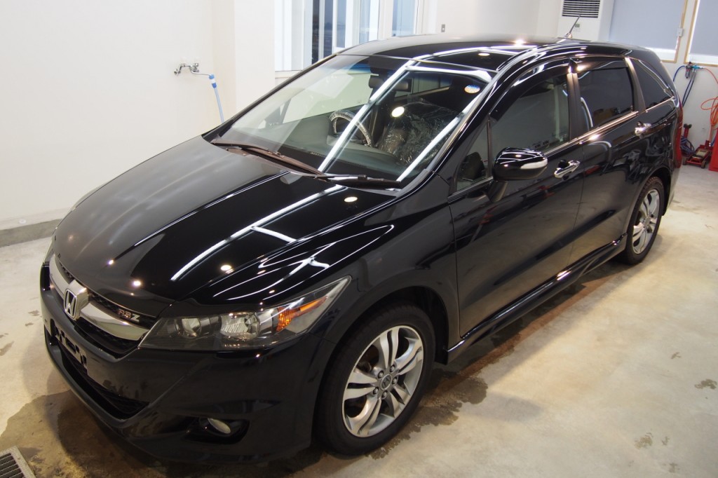 ホンダ ストリーム スタンダード研磨+TTクリア5レイヤー+全面窓ガラス撥水コーティング+夏用ホイールのコーティング