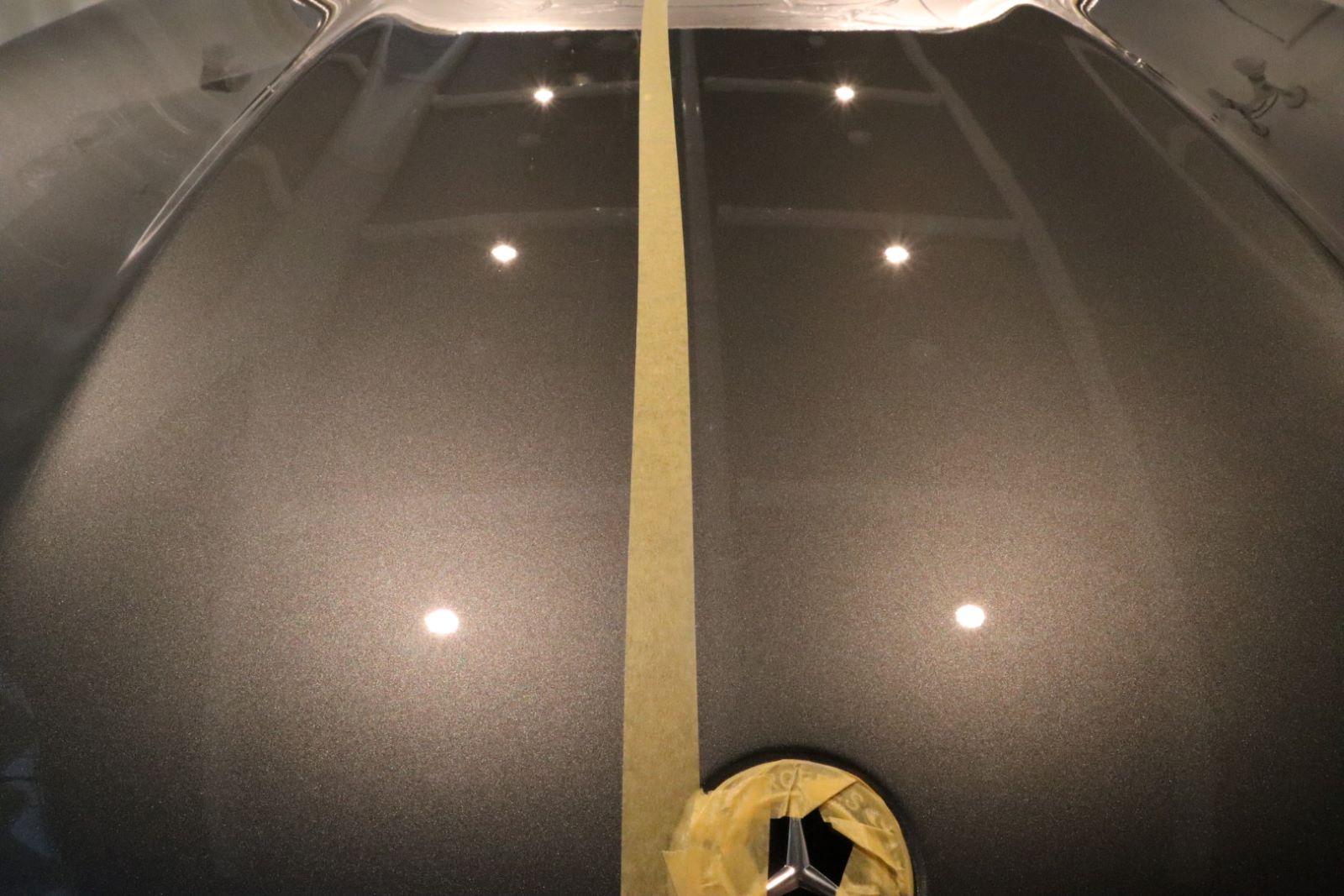 ボンネットの研磨です。左側が研磨前、右側が研磨後です。ライトの映り込みが違います。