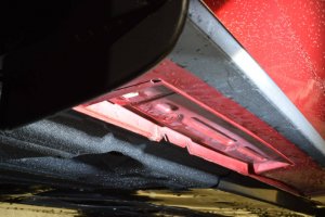 最初にシャンプー洗車で泥汚れ等を落します。シャンプー洗車で落ちない汚れは汚れにあった洗剤を使い除去します。目立った水ジミは見当たりませんが細部には汚れが蓄積していました。