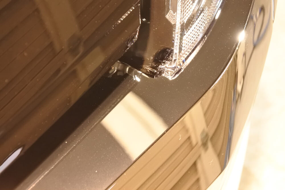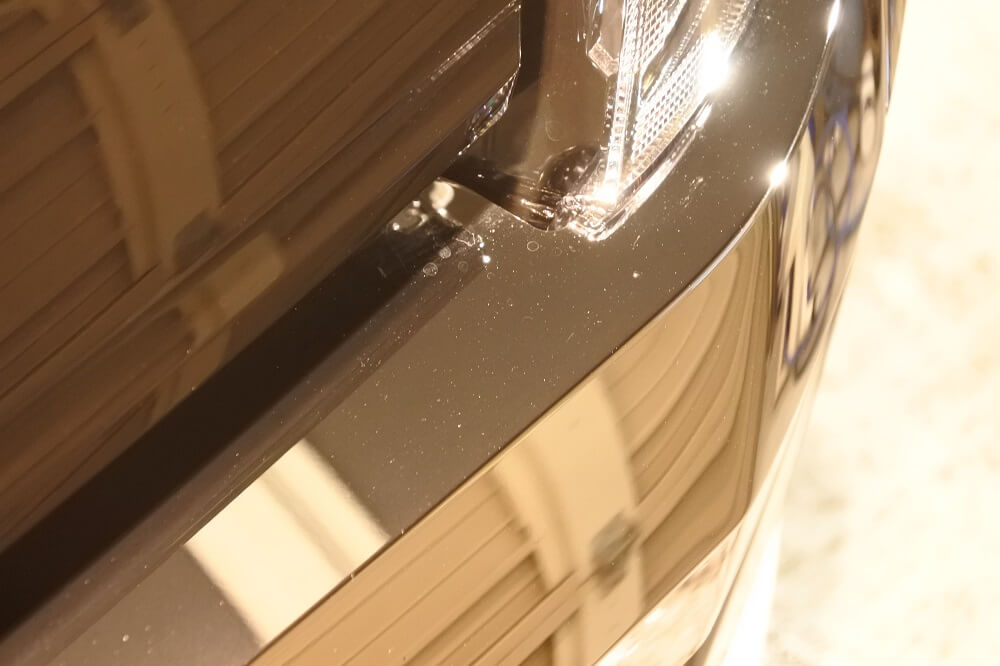 納車されたばかりなので目立った汚れも付着しておらず、付着していた水ジミなどの汚れも落としやすくキレイな状態でした。エンブレムなど細部までに及ぶ徹底的な洗浄とフロント・リアガラス撥水を終え、すっぴんの状態になったので、極艶ビューティフルコートを施工してまいります。極艶ビューティフルコートは名前の通り、新車のキレイな塗装面のツヤを極限まで引き出してくれる2層の完全硬化型ガラスコーティングです。ツヤを引き出すだけではなく、繰り返しの洗車にも耐えられる耐久性も備わっておりますので、安心して洗車をすることができます。しかし、コーティングしているからといって洗車機に入れたり、ゴシゴシ強く力を入れて洗うとキズはすぐについてしまいます。なので優しく撫でるように洗車をしてあげるのをオススメいたします。