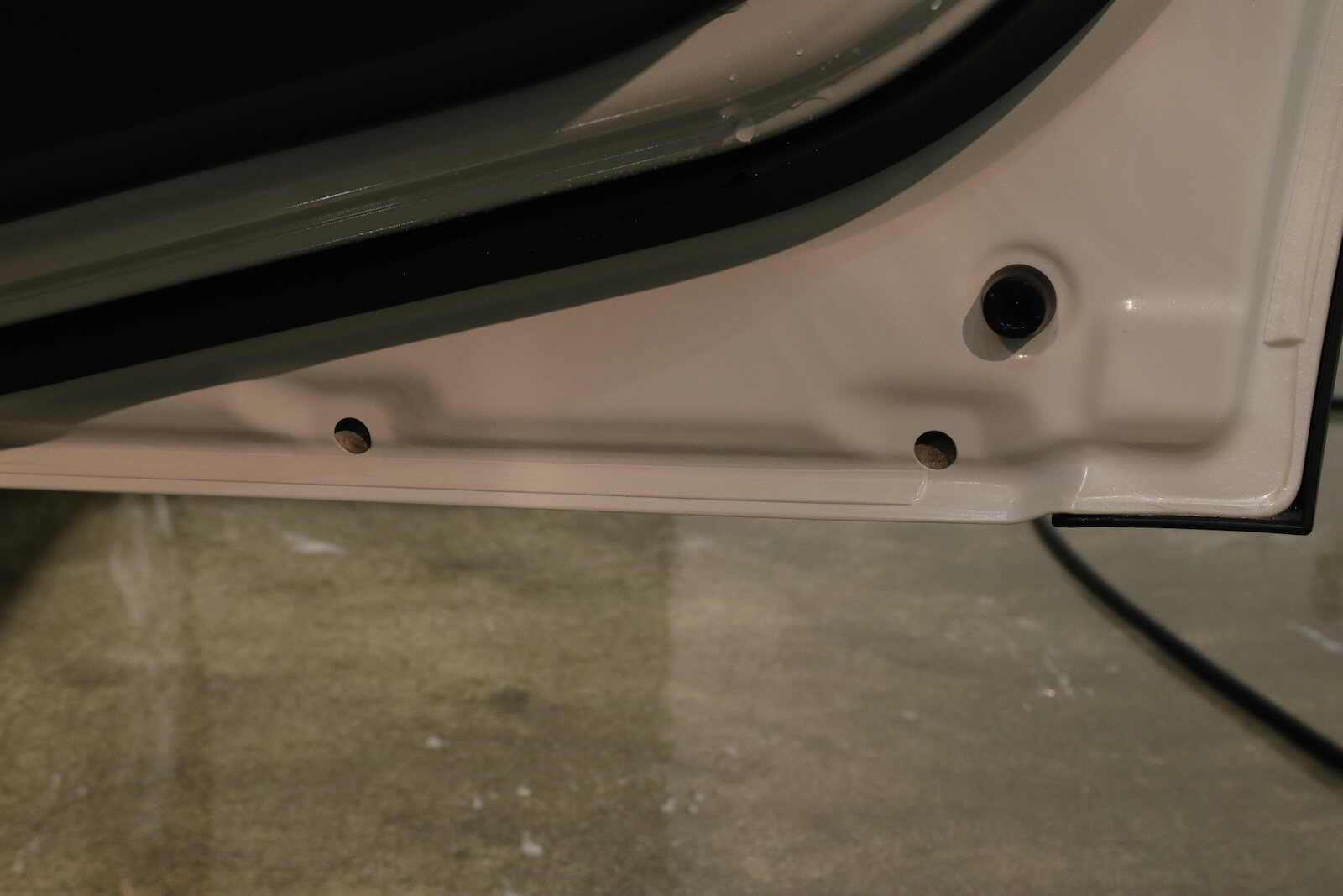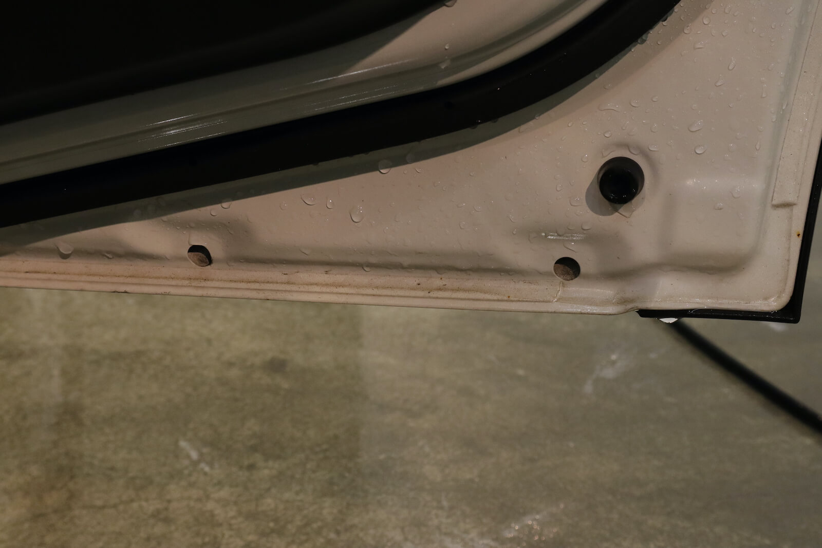下地処理洗車のご用命でしたので、普段は見えず洗浄することが少ない箇所もキレイにいたします。室内側のドア下に鉄粉や汚れが付着しておりました。こちらもキレイにしてまいります。