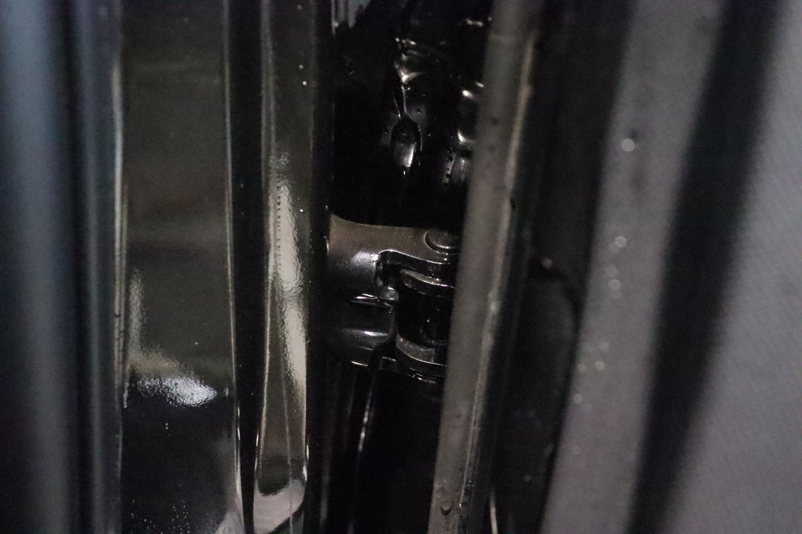 納車前に行われたワックスも綺麗になりました。続いてドアヒンジも洗浄してまいります。
