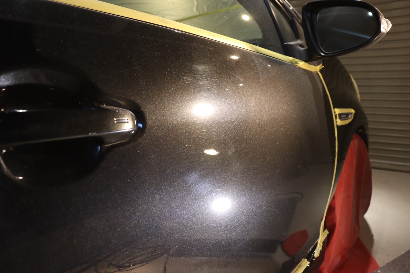 こちらのおクルマは門型洗車機で洗われていたのか、側面もキズの量が多い状態です。研磨後。
