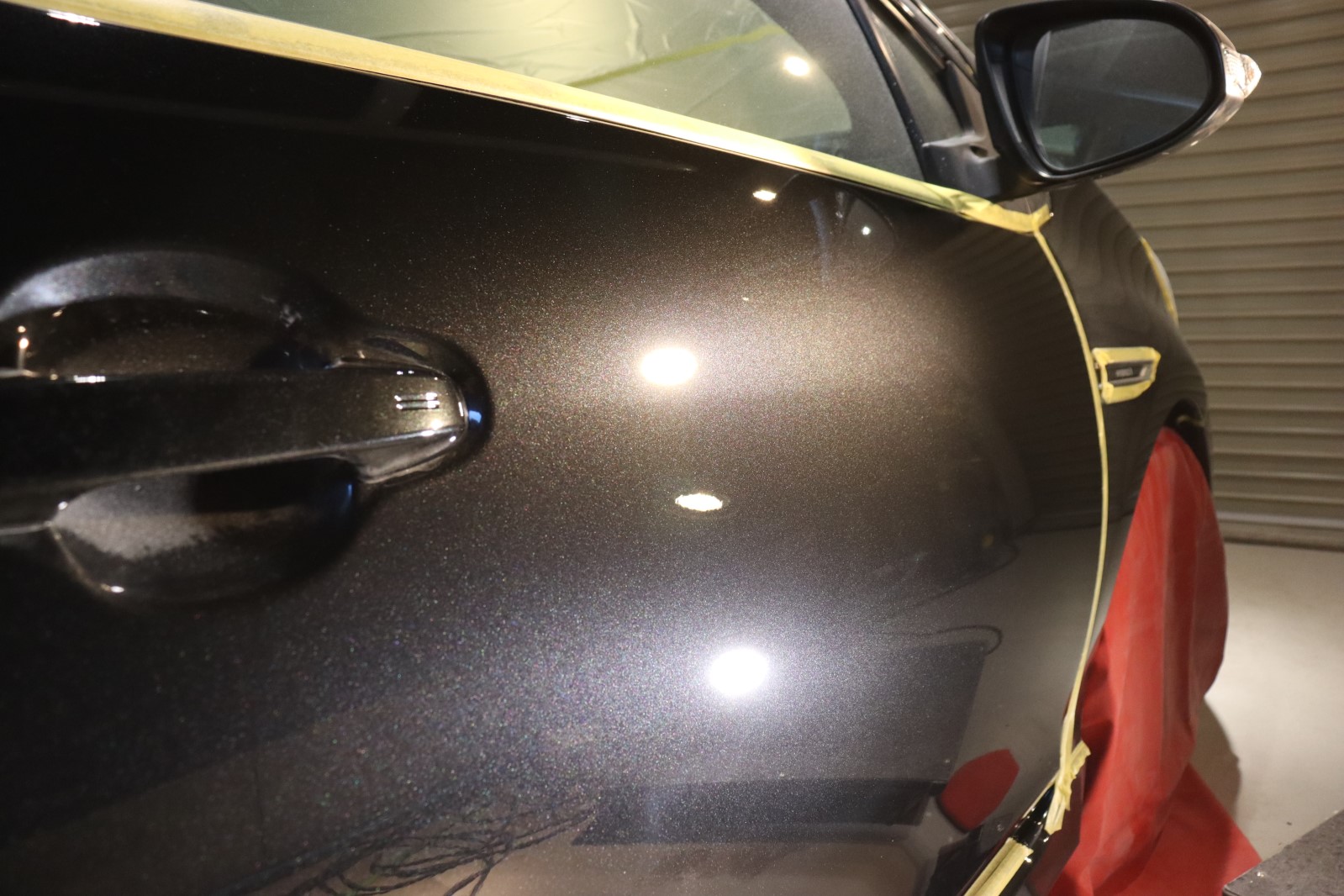 ハッキリとしました。徹底的な洗浄と研磨が終わり、3工程で強い被膜になりますグロスアーマーを施工してまいります。グロスアーマーは透明度が非常に高く、丁寧に磨き上げられた塗装面をしっかりと美しくし、かつ強い被膜が汚れや劣化からも守ってくれます。おクルマをご覧になったオーナー様は「凄い!メッチャ綺麗!かっこいい!」と何枚も写真を撮影されておりました。喜んでいただけたご様子で、何よりでございます。