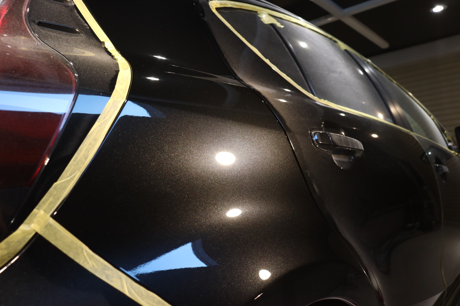 こちらのオーナー様は、ずっとお乗りになりたかった念願のG’sアクアをご購入頂いたのを機に、当店で施工していただいたお客様よりご紹介を受け、ご来店していただく運びとなりました。初めにおクルマを見せていただいた際、屋外では分からなかった傷が浮き彫りとなり、ショックを受けていらっしゃいましたが、「これから大切に乗って行きたいので」と研磨とグロスアーマーをご用命くださいました。オーナー様のご期待にお応えできるよう、しっかりと施工させていただきます。