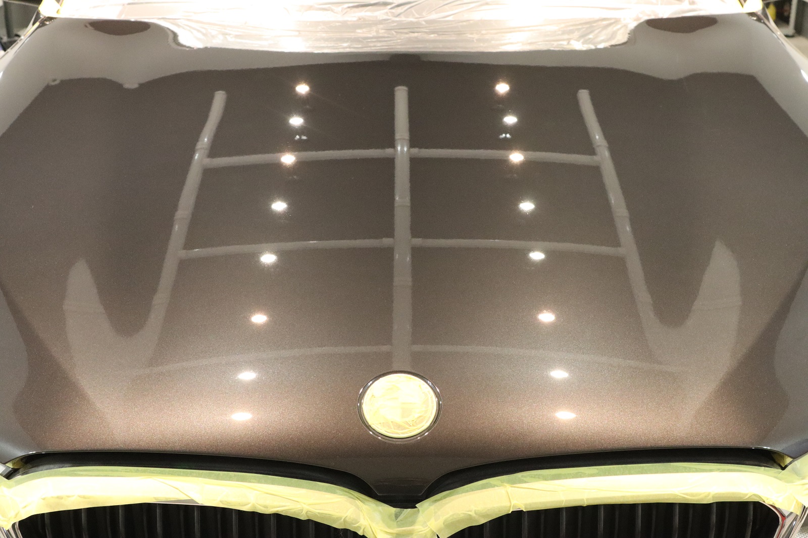 洗浄と研磨作業が終わり、3工程で強い被膜になりますグロスアーアーを施工してまいります。グロスアーマーを施工することで美しさは最大限となり、研磨でより平滑になった塗装面をさらに平滑にして汚れづらくいたします。また、塗装面を劣化から守り長く美しさを維持してくれます。