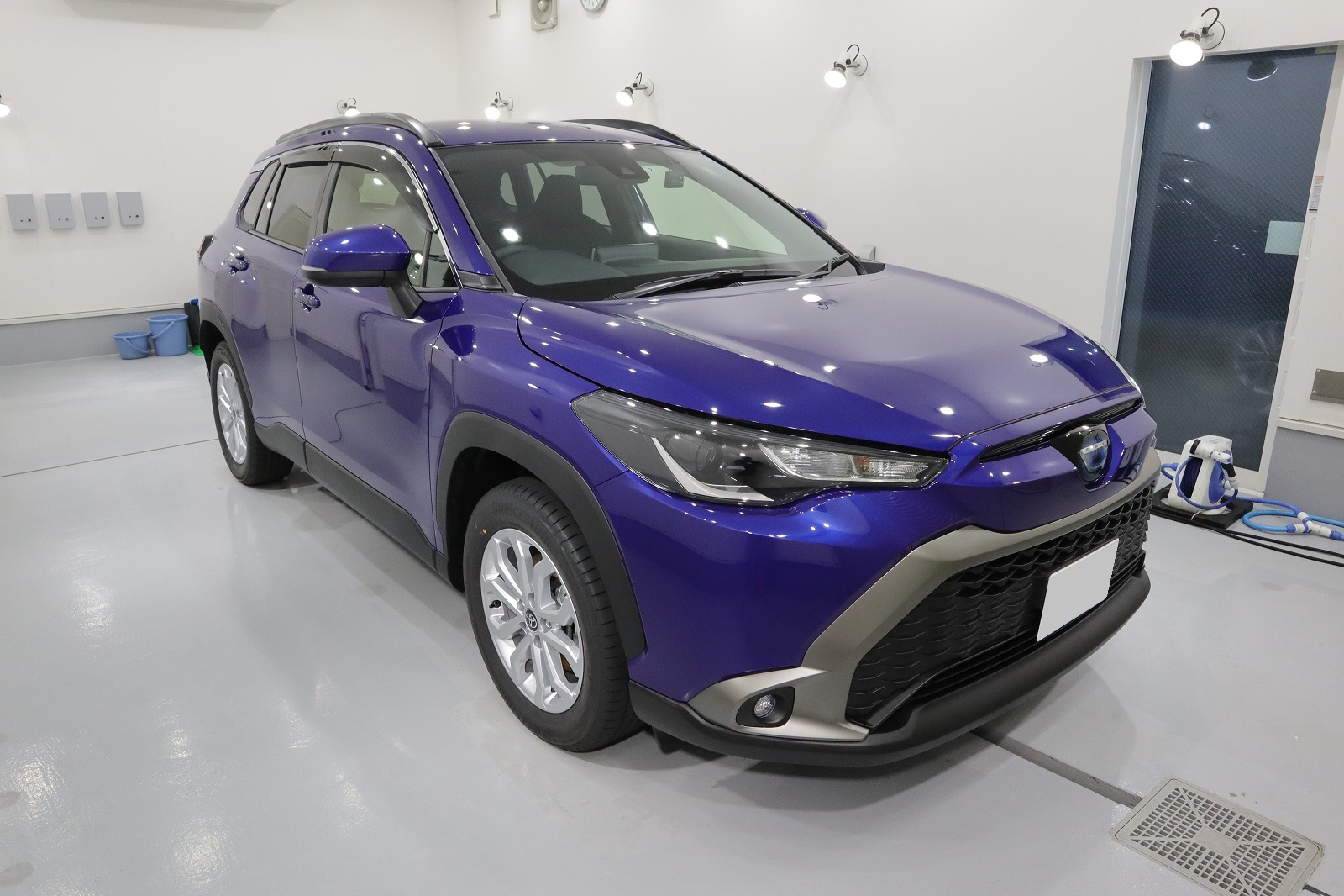 本店です。【トヨタ カローラクロス 極艶ビューティフルコート+フロントガラス撥水】のご用命でご入庫いたしました。