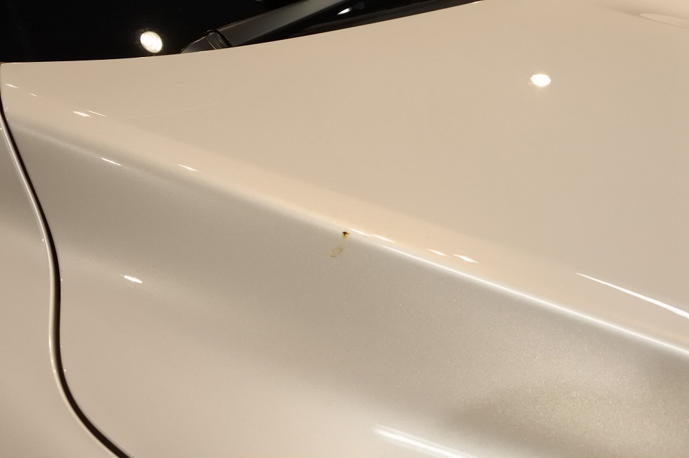 最初に砂埃・泥汚れなどの汚れをシャンプー洗車で落としてまいります。新車なので、あまり目立った汚れは付着しておりませんでしたが、部分的に少し水ジミや鉄粉が付着していましたので専用の洗剤で落としてまいります。