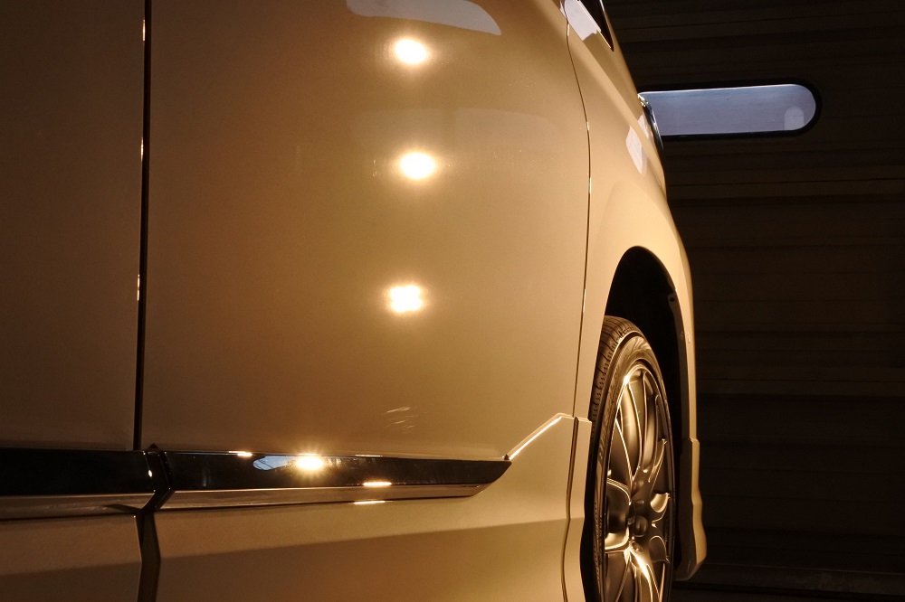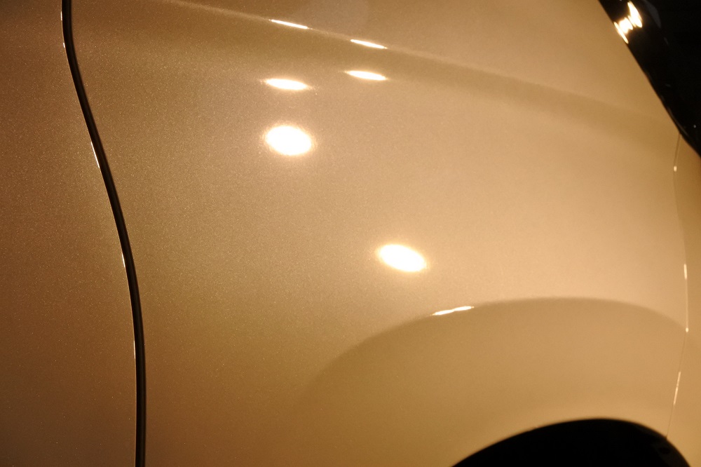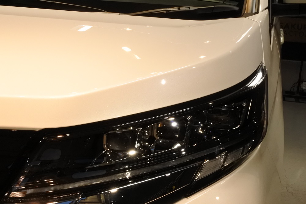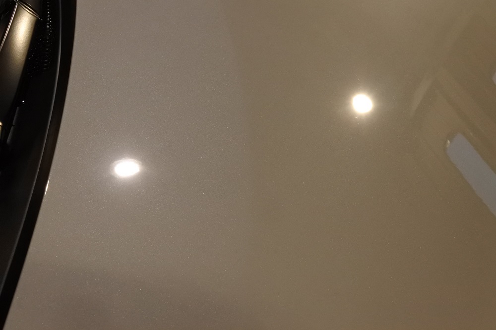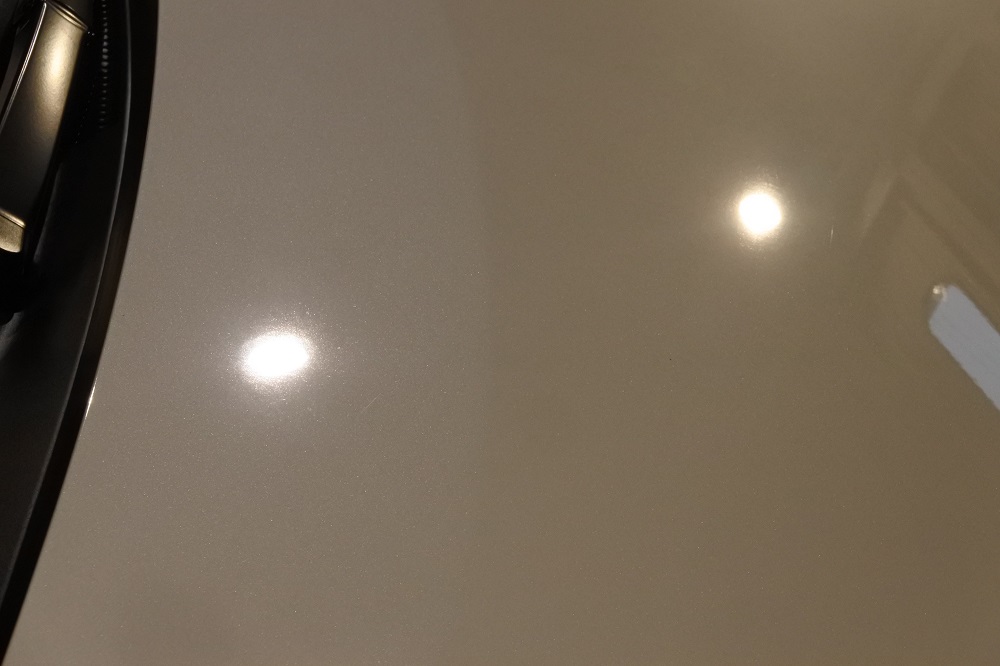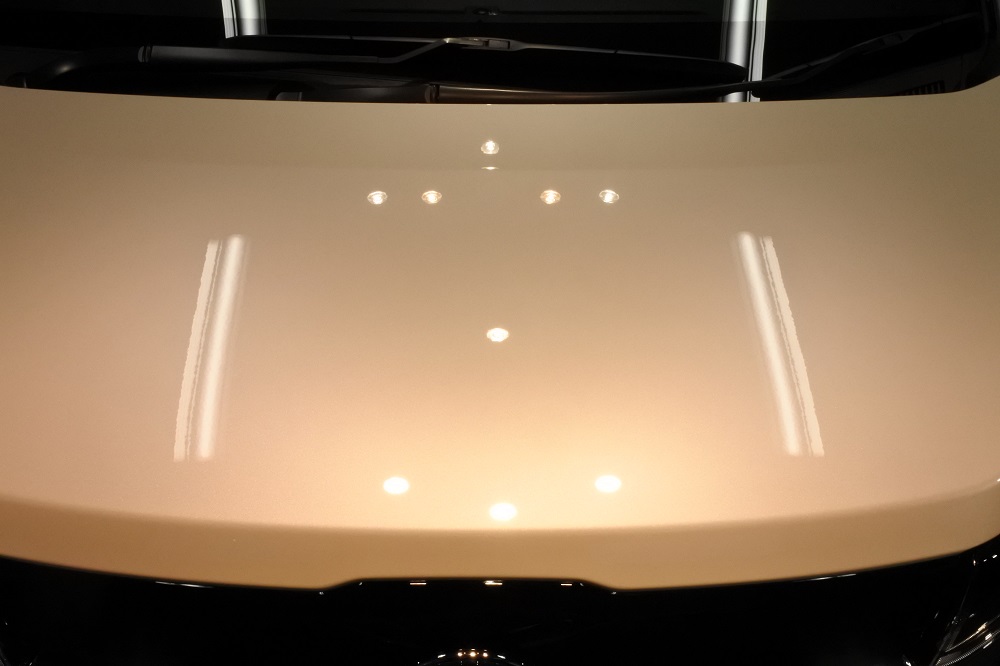 研磨工程も終わりました。最後に3層の完全硬化型ガラスコーティングのグロスアーマーを施工してまいります。透明度の高いコーティングです。ガラスのように透き通りつつ、ツヤを演出してくれます。また、強い皮膜なので塗装面を汚れや劣化から守ります。