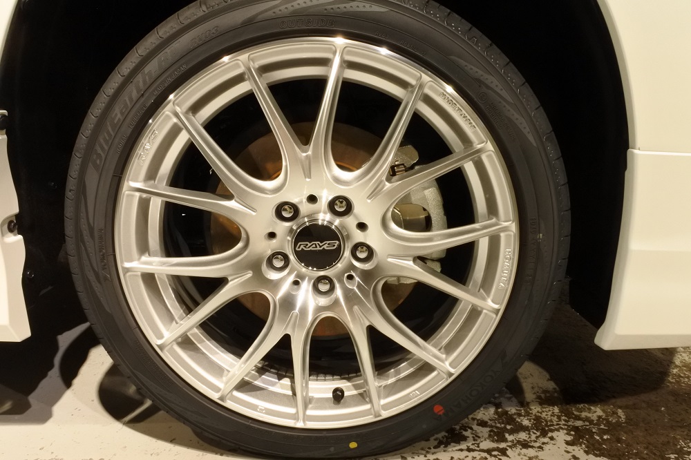 洗浄、ホイールコーティングが終了いたしました。次は研磨作業へ移ってまいります。キズがほとんど付いていない新車も磨き上げることによってモヤリ、浅いキズが除去されます。