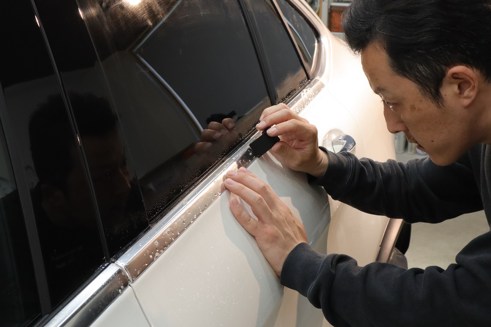 こちらのオーナー様は既存のお客様で、別なおクルマでグロスアーマーを施工されており仕上がりに大変満足されたことから、お乗り換えされたこちらのおクルマもグロスアーマーの施工に加え、全面ガラス撥水と金属メッキモールのプロテクションフィルムのご用命もくださいました。誠にありがとうございます。オーナー様のご期待にお応えできるよう、しっかりと施工させていただきます。