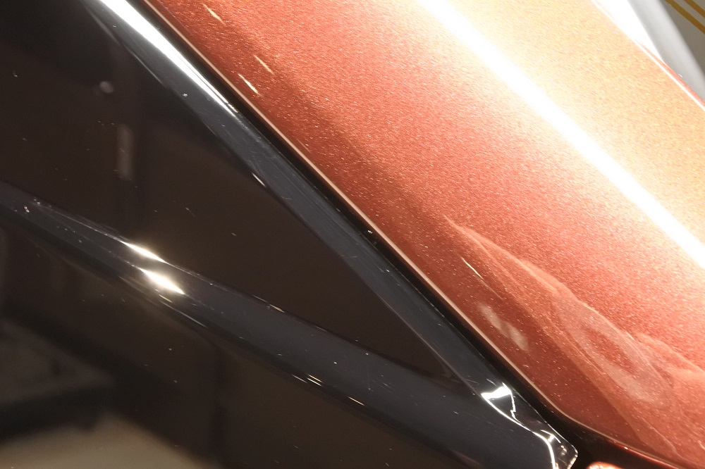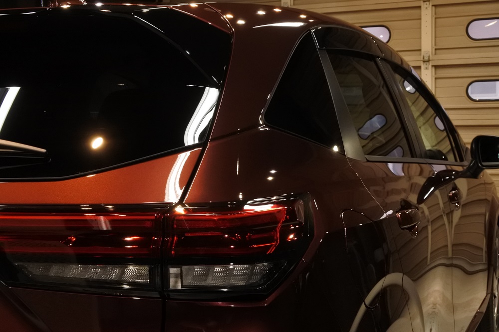 徹底的な洗浄が終わりましたら、極艶ビューティフルコートを施工してまいります。2層からなる完全硬化型ガラスコーティングで、新車の美しい塗装面のツヤを高めます。施工前と比べ、汚れも落としやすい状態なのでお手入れも楽にできるようになります。