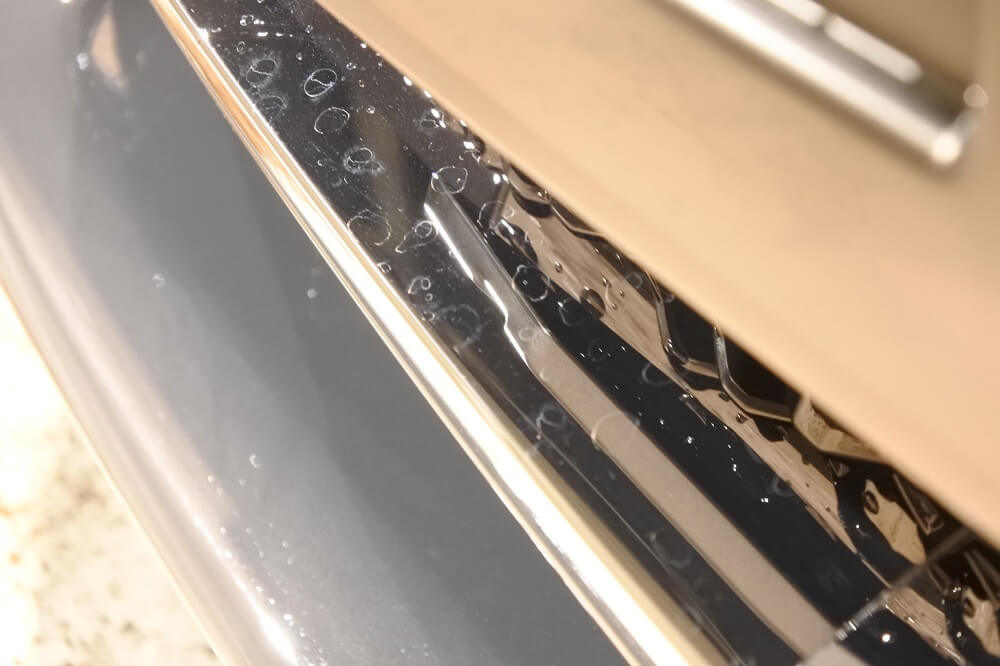 フロントグリル付近の水ジミを除去します。