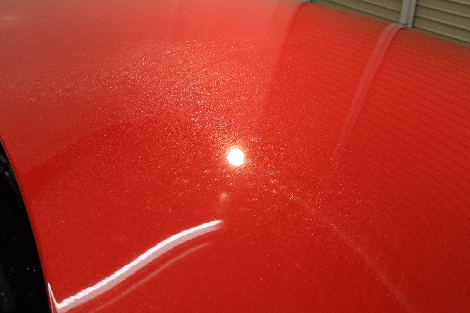 洗剤で落ち切らない水ジミが塗装面に残っております。こちらも磨き上げてまいります。