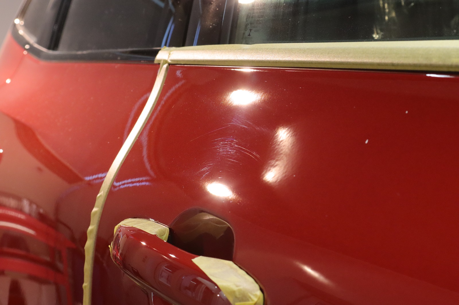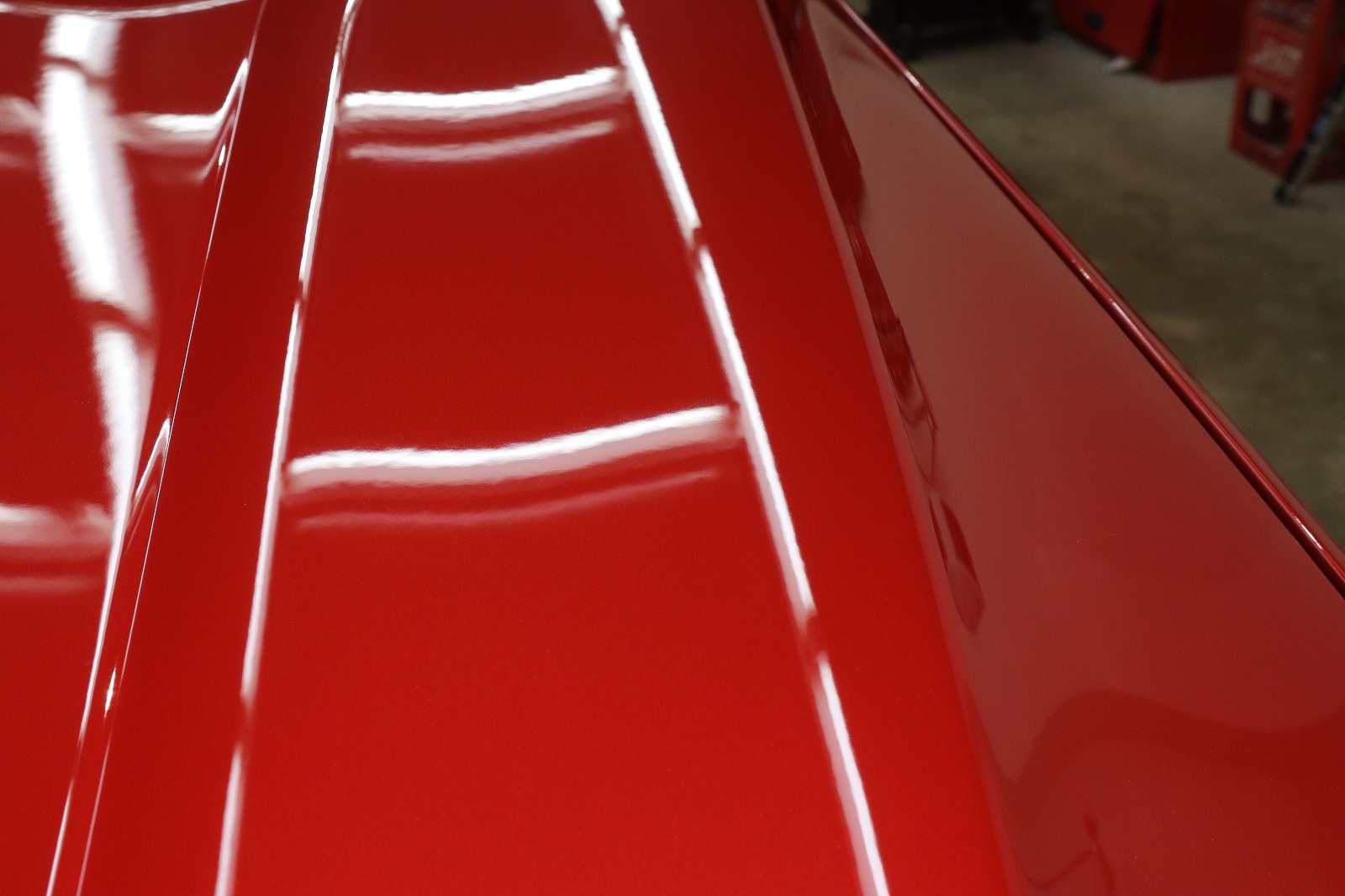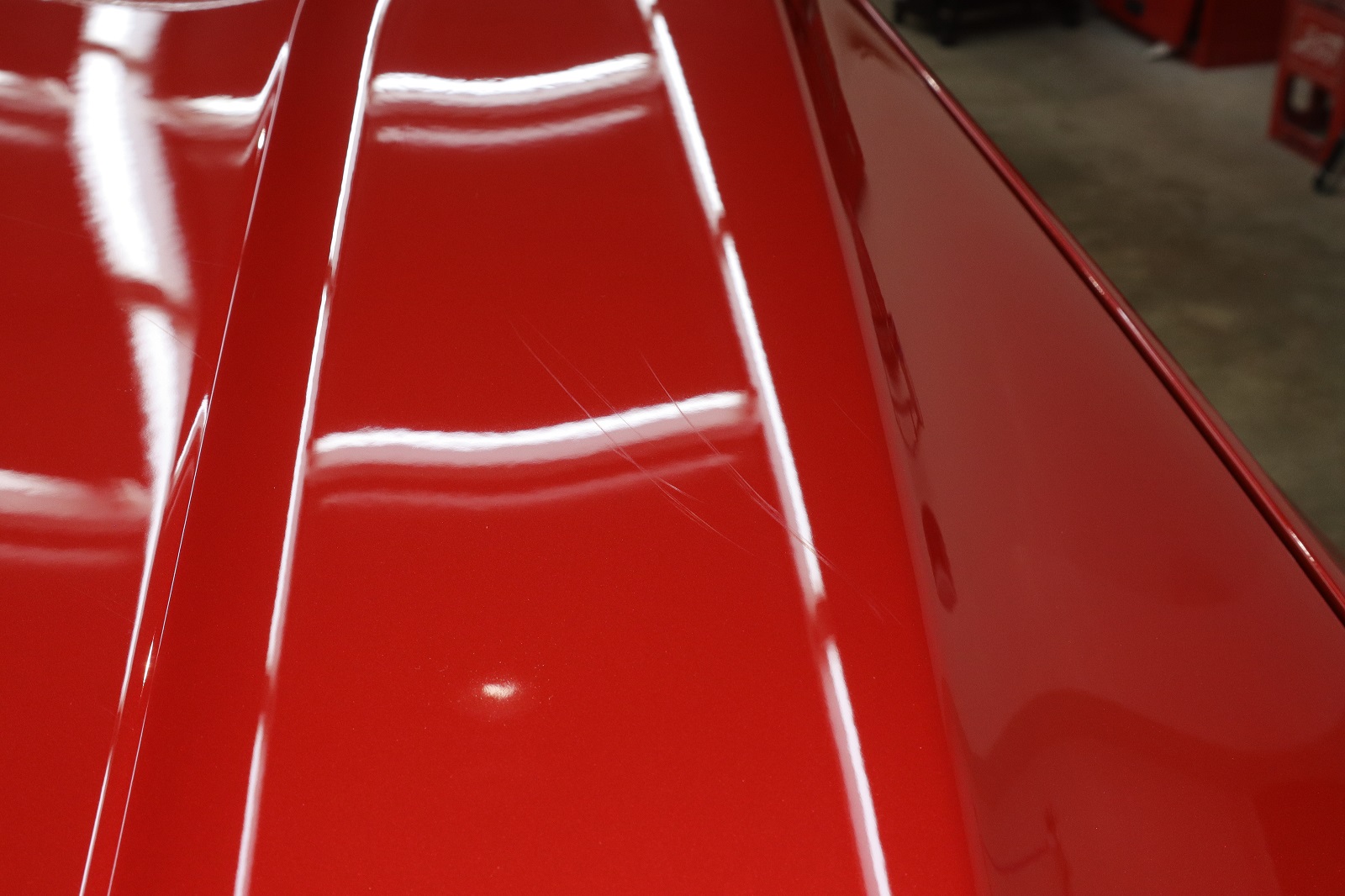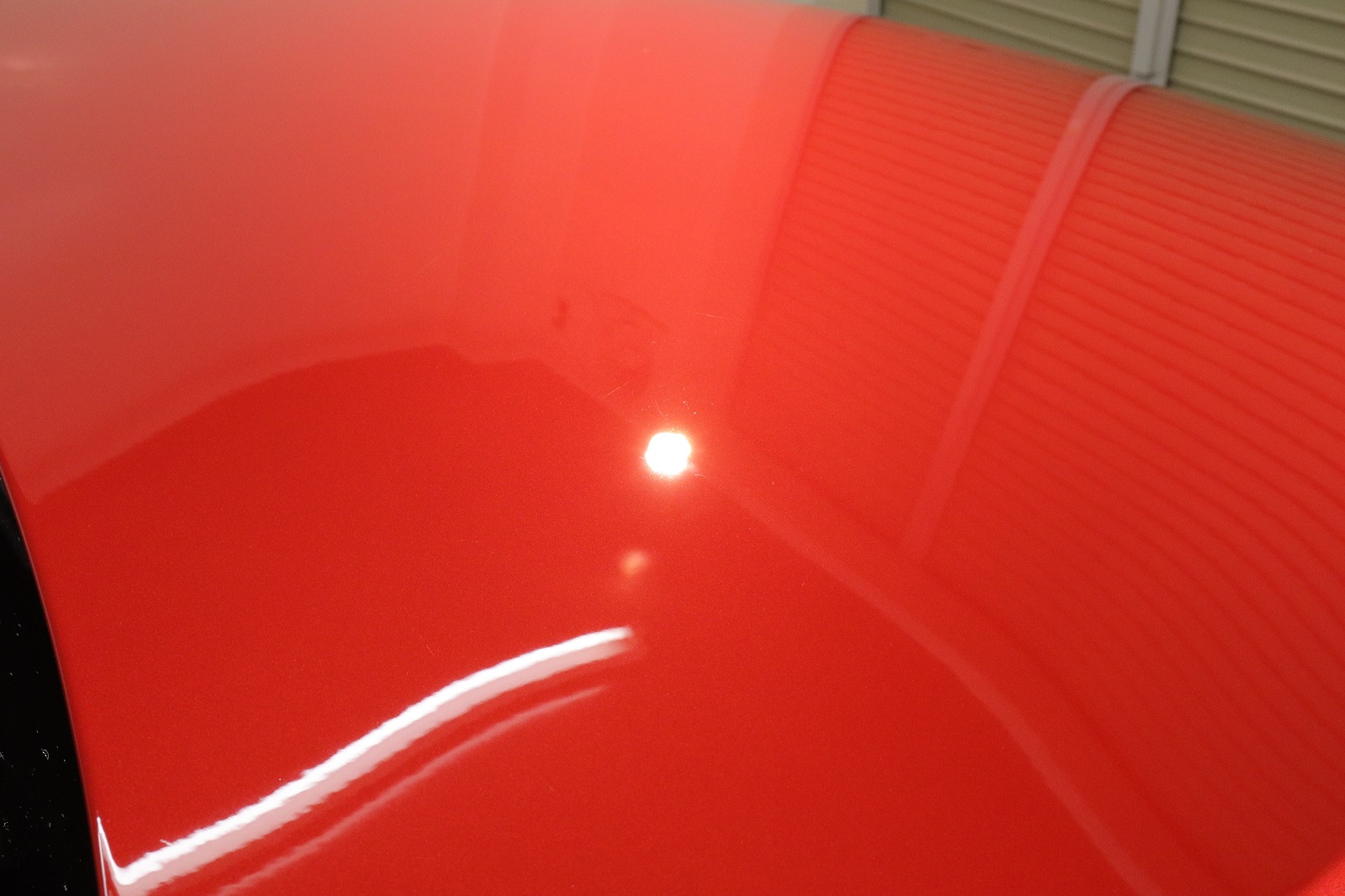 徹底的な洗浄と全面ガラス撥水が終わり研磨へ移ってまいります。所々にキズがありましたのでキズを除去し塗装面を美しく磨き上げてまいります。