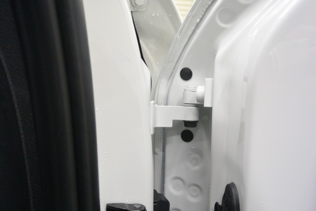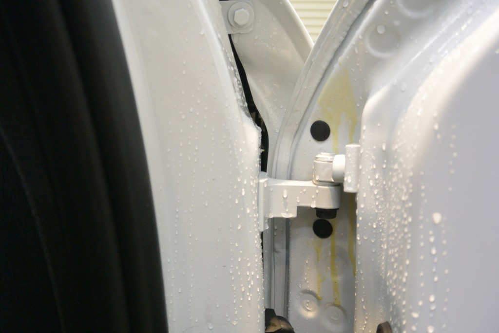 ドアヒンジ付近には、多すぎるグリスがべっとりと。このままにしておきますと、汚れを呼んで黒くなってしまいます。