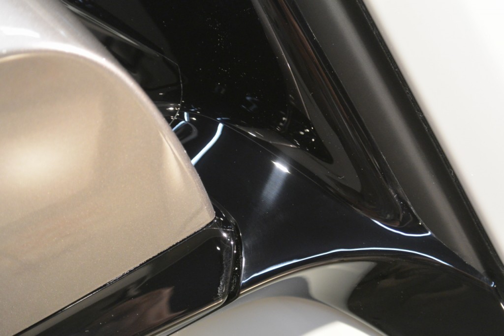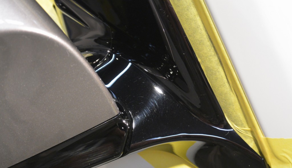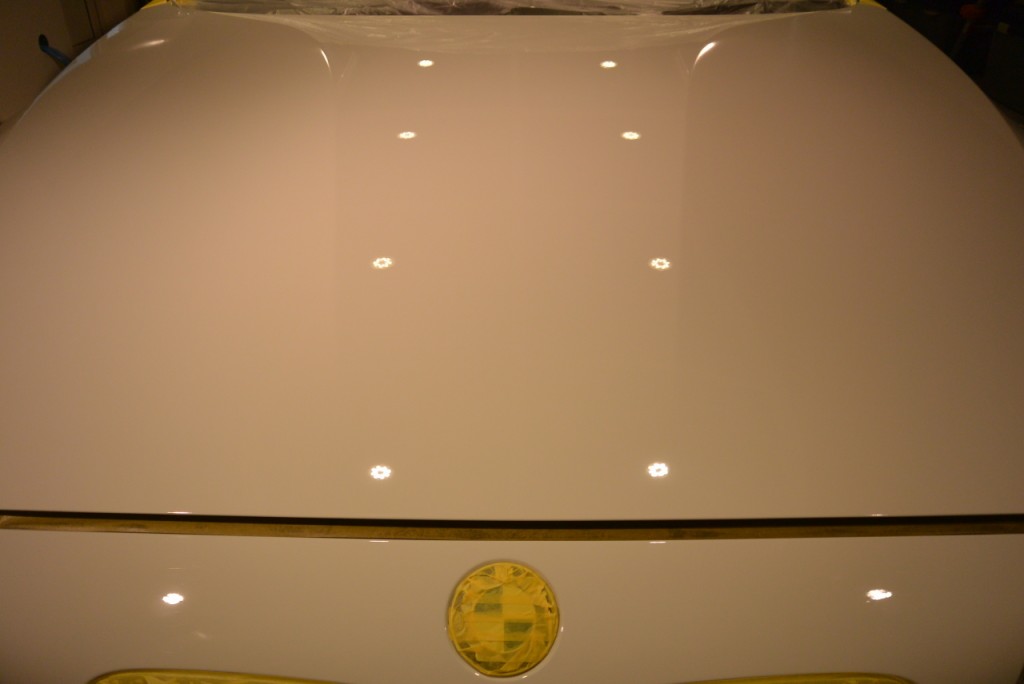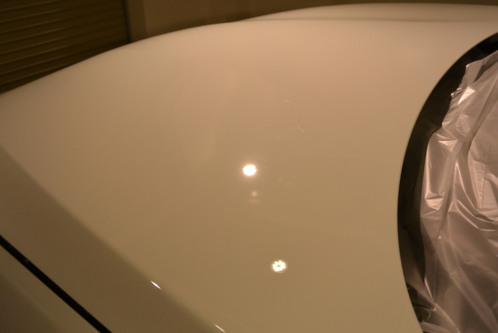 新車でのご入庫ですが、洗車傷が確認できます。写真では分かりにくいですが、スポットライトの周りに、何本か光っている傷が見えるかと思います。