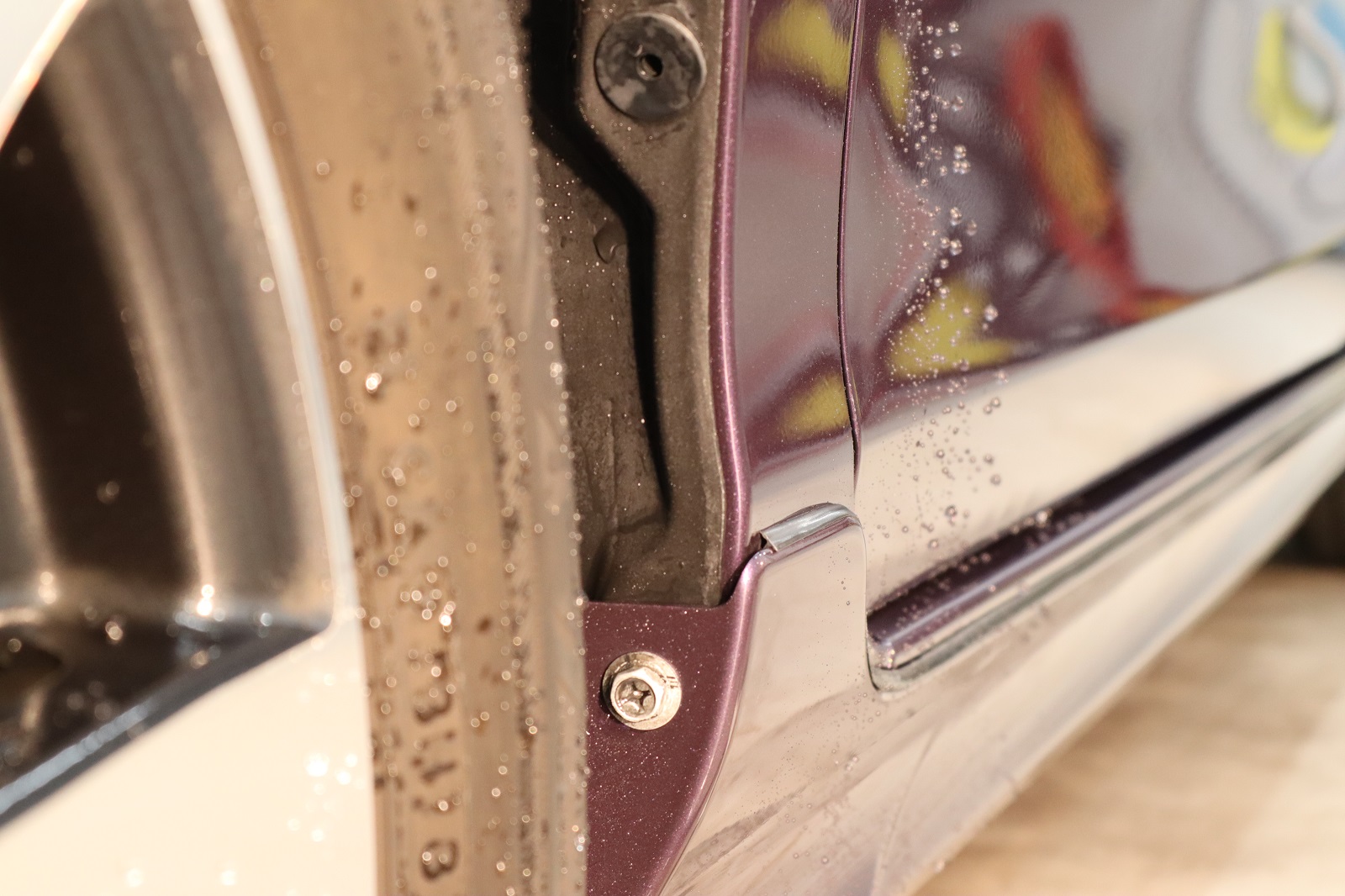 全ての施工が終わり、3工程で強い被膜になりますグロスアーマーを施工してまいります。グロスアーマーは、透明度の高い被膜ですので美しく磨き上げられた塗装面の邪魔をすることなく、美しさを最大限にいたします。また、強い被膜で塗装面を汚れや劣化から守ってくれます。